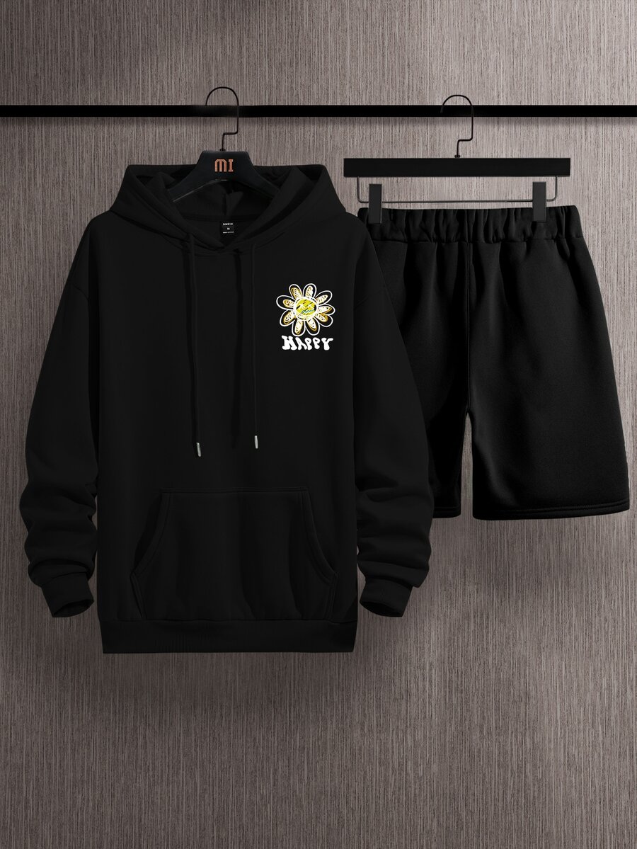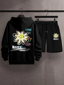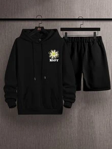 Homme Short & sweat-shirt à capuche fleuri à motif de lettre à cordon