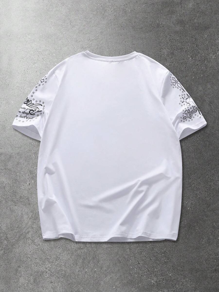 T-shirt graphique avec lettres et chiffres pour hommes