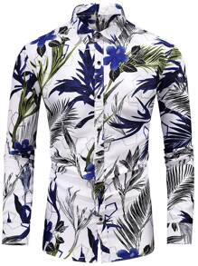 NITAGUT Homme Chemise à imprimé plante à bouton