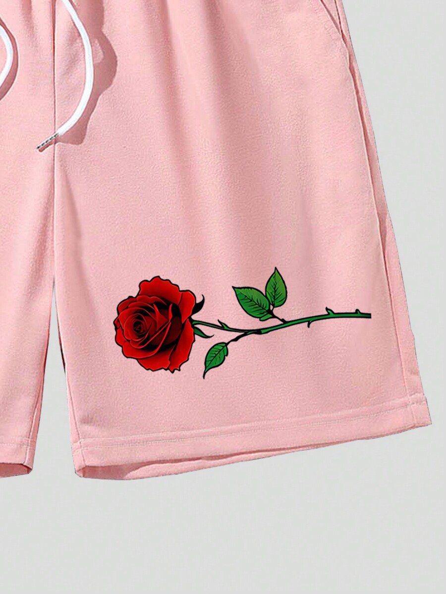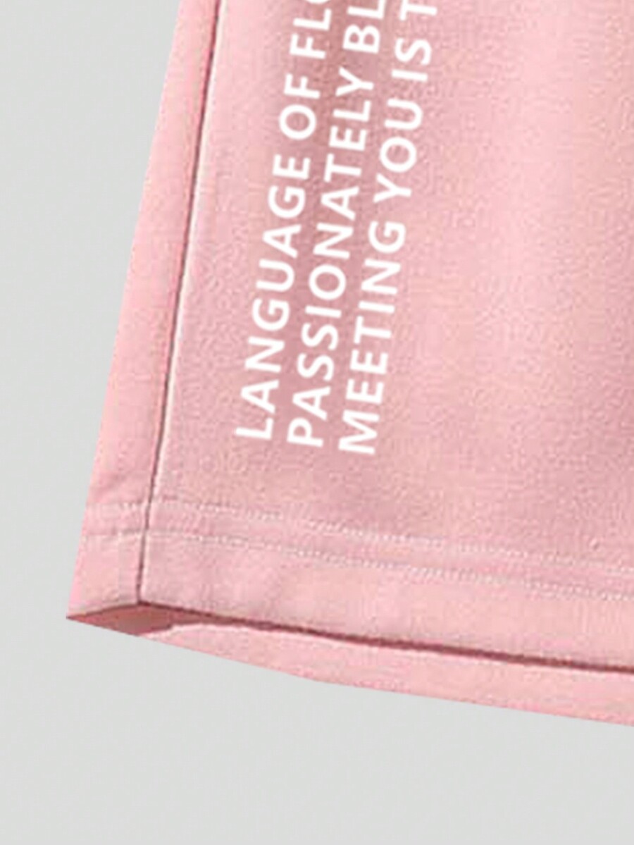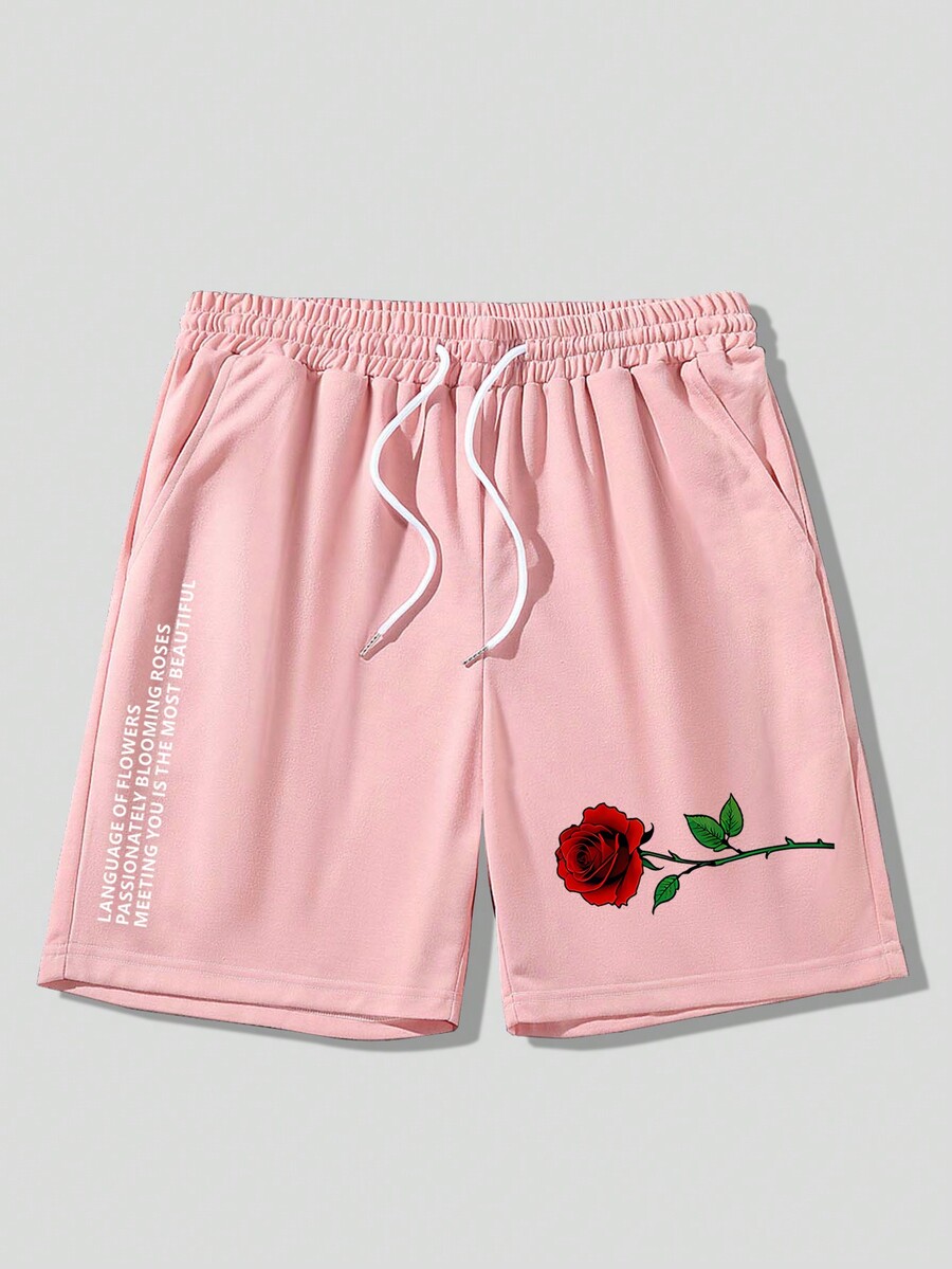 Homme Short rose & Graphique De Slogan À Cordon