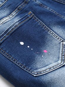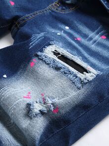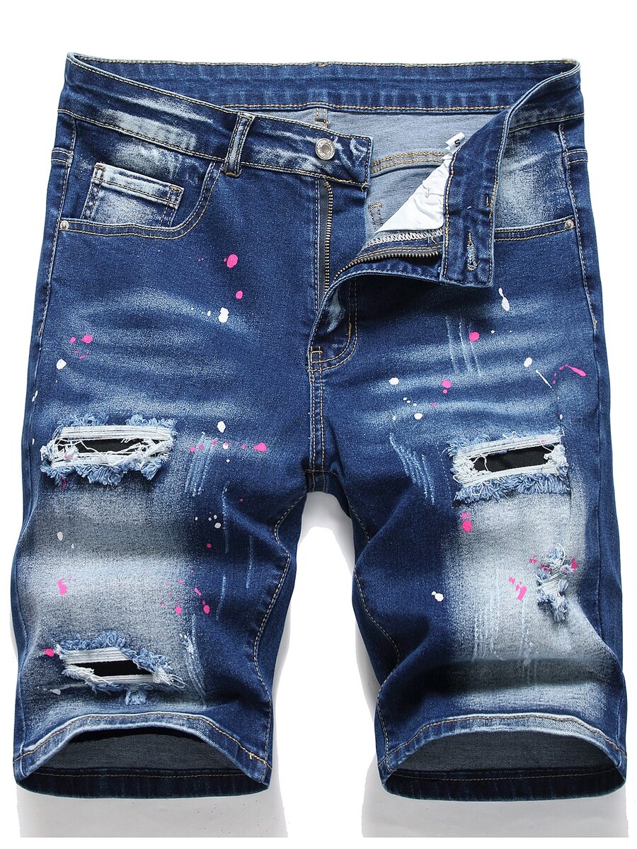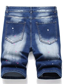 Homme Short en jean peinture éclaboussée déchiré effiloché
