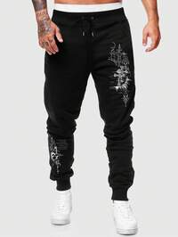 Street Life Pantalon de survêtement ample à motif mode pour hommes, pantalon décontracté imprimé croix