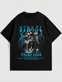 Street Life T-shirt ample lavé avec graphique de figure sombre et lettre, style mode anime pour hommes