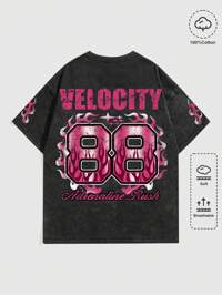 Street Life T-shirt à manches courtes ample pour hommes avec imprimé graphique de lettres et de chiffres peints au pistolet