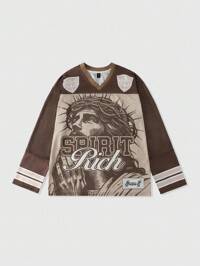 Street Life T-shirt de football à épaules tombantes avec graphique de lettre pour hommes, école