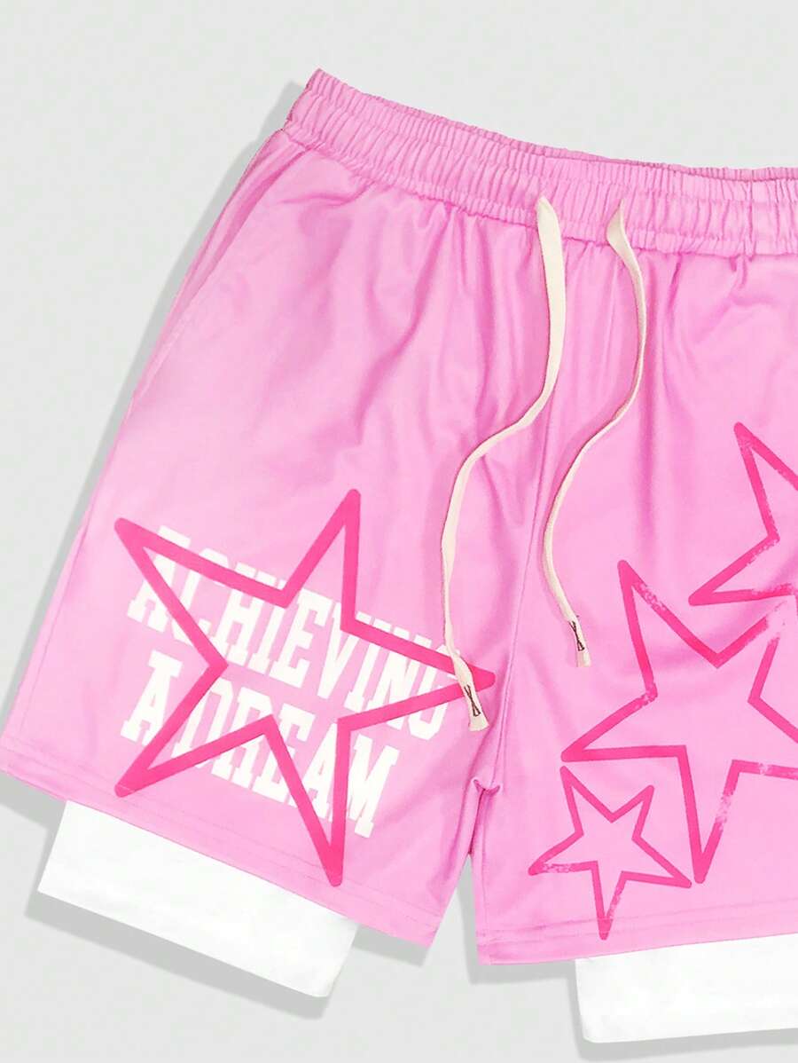Anime Short de sport à taille cordonnée avec imprimé étoile à cinq branches pour hommes