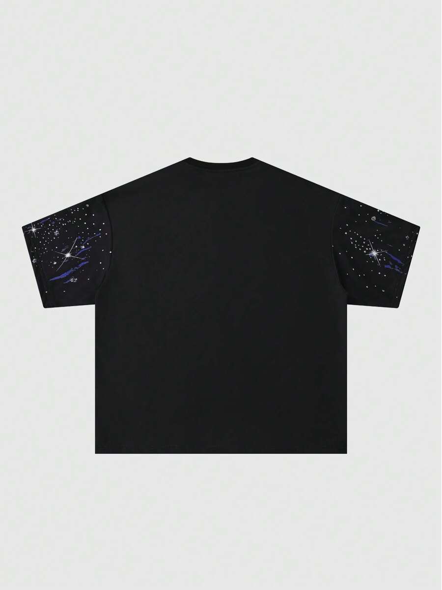 T-shirt décontracté à col ras-du-cou à manches courtes avec imprimé artistique tout-sur-tout pour hommes