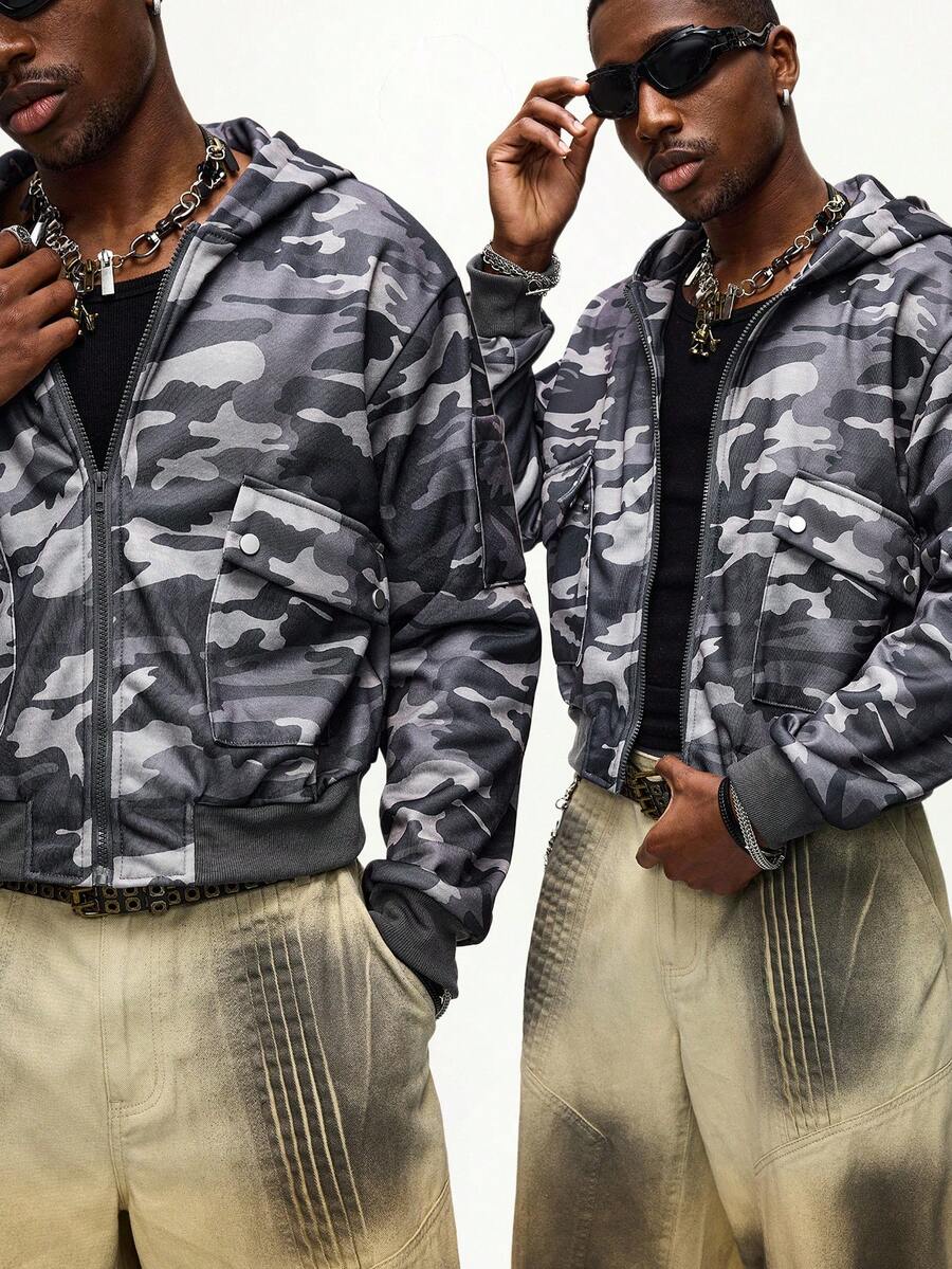 sweat-shirt à capuche zippé décontracté de style urbain camouflage pour hommes, automne/hiver