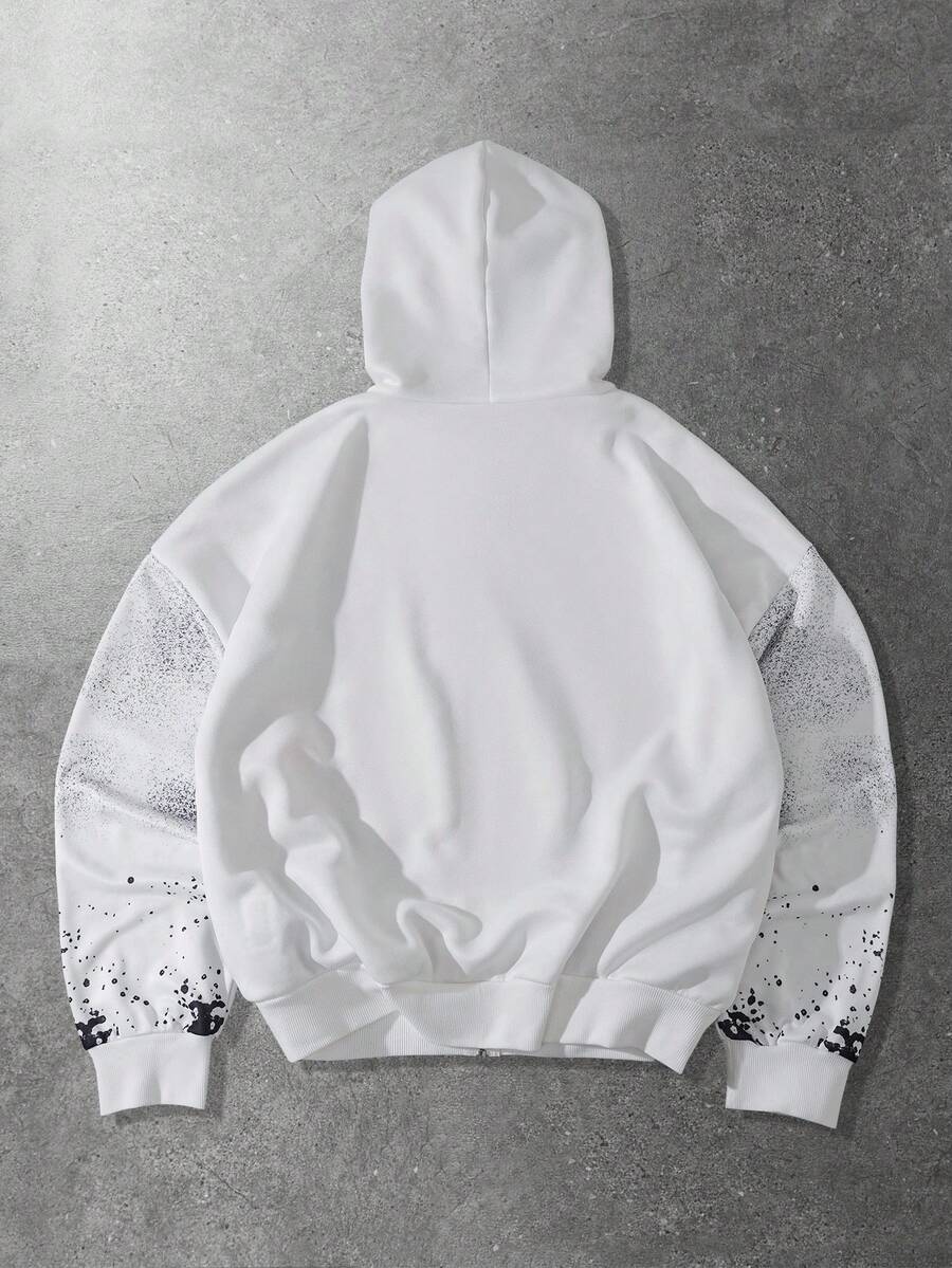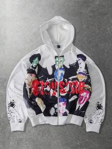 sweat-shirt à capuche zippé avec impression de portrait flou, style de rue rétro pour hommes