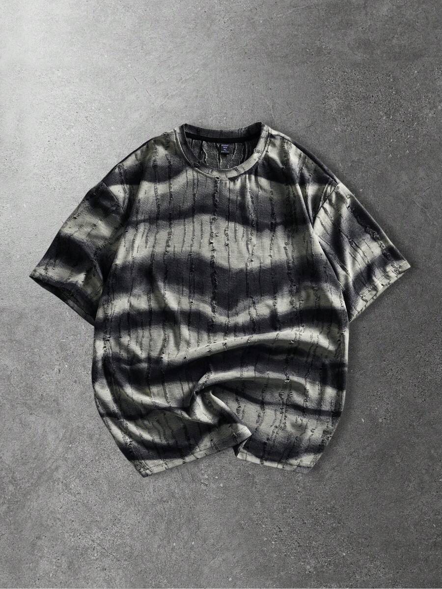 T-shirt décontracté à manches courtes avec imprimé dégradé et déchiré, style mode de rue pour homme, été
