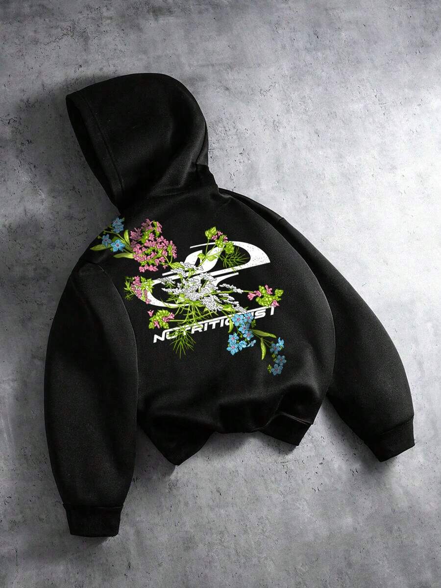 Sweat-shirt à capuche décontracté pour hommes avec motif floral