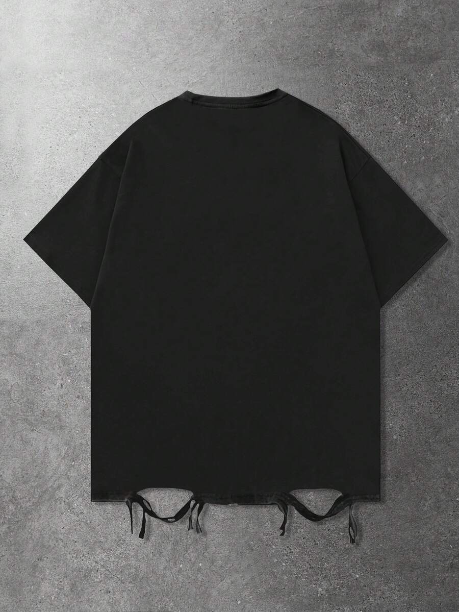 T-shirt noir ample et décontracté pour hommes avec motif croix et rivets, convient pour le port quotidien et les déplacements, été