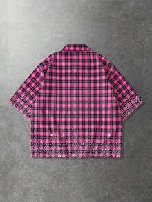 Chemise décontractée ample à carreaux à manches courtes pour hommes, polyvalente pour un port quotidien