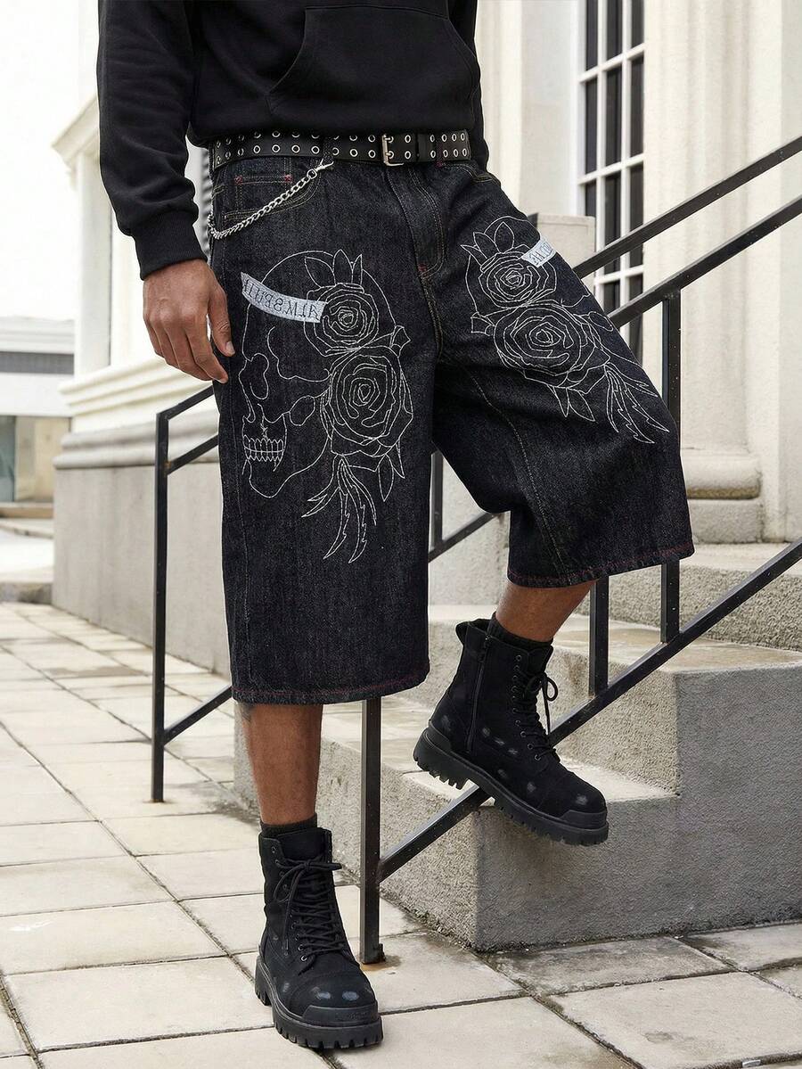 Jeans en denim court à motif crâne décontracté pour hommes