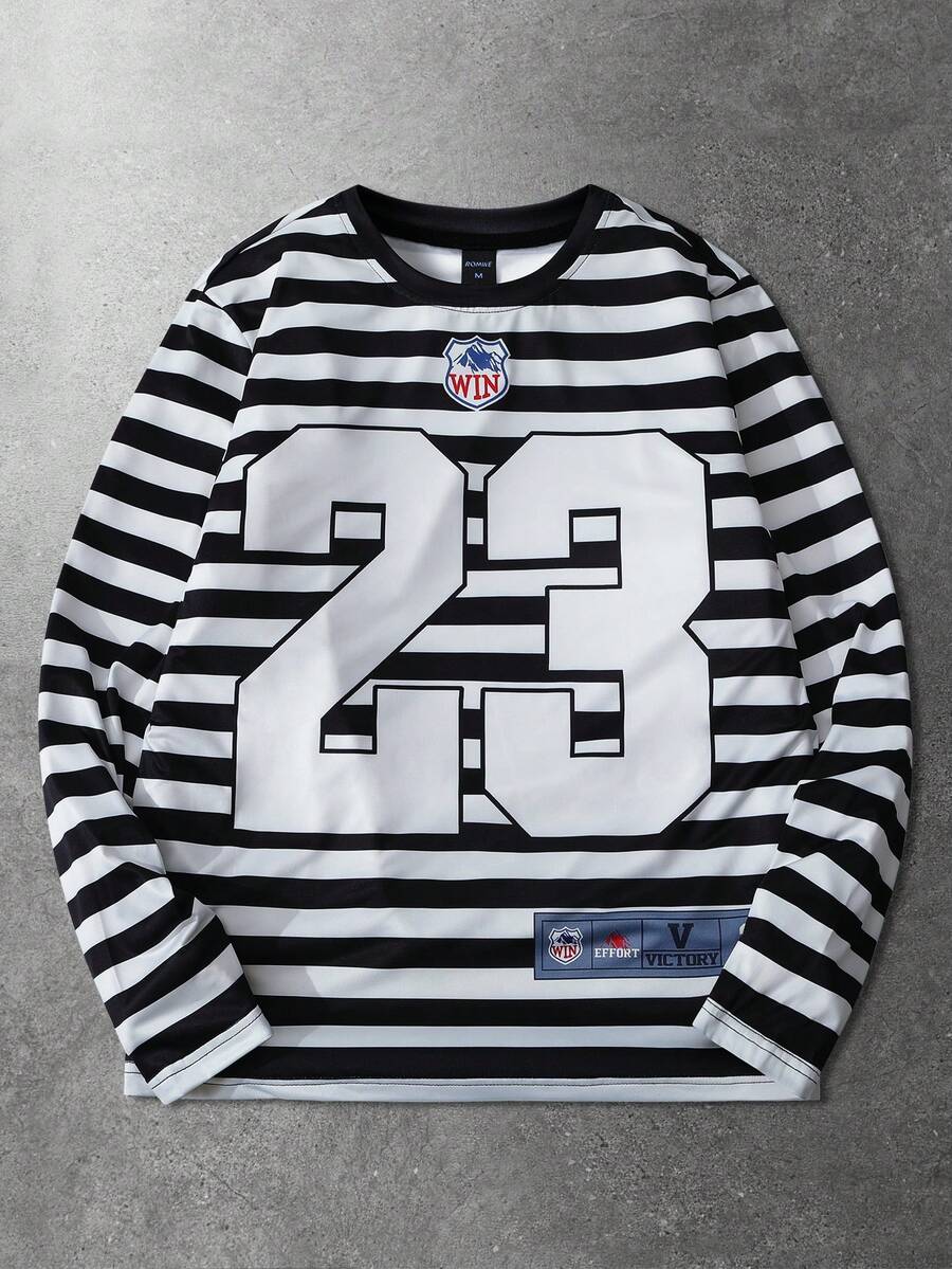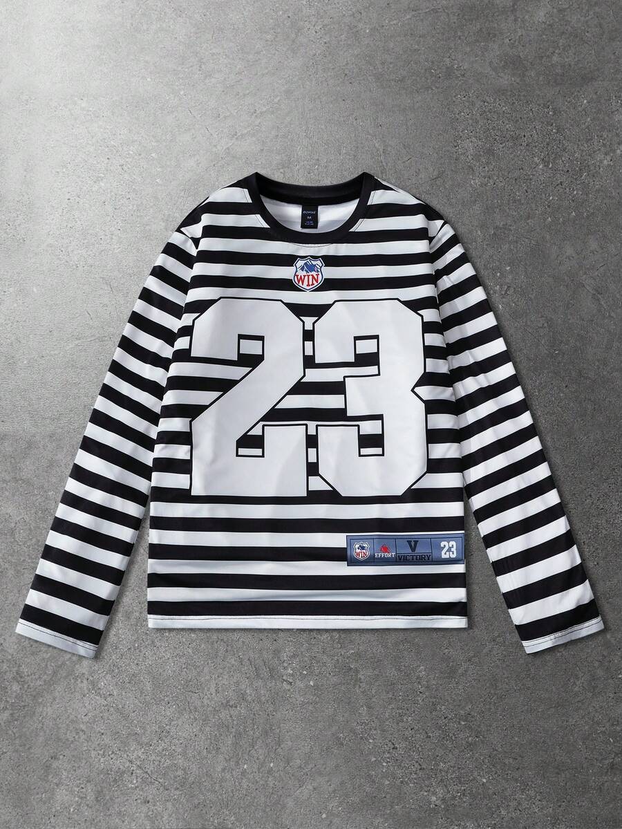T-shirt à manches longues décontracté pour hommes avec imprimé rayé #23