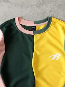 Sweat-shirt-shirt ample à blocs de couleurs pour hommes