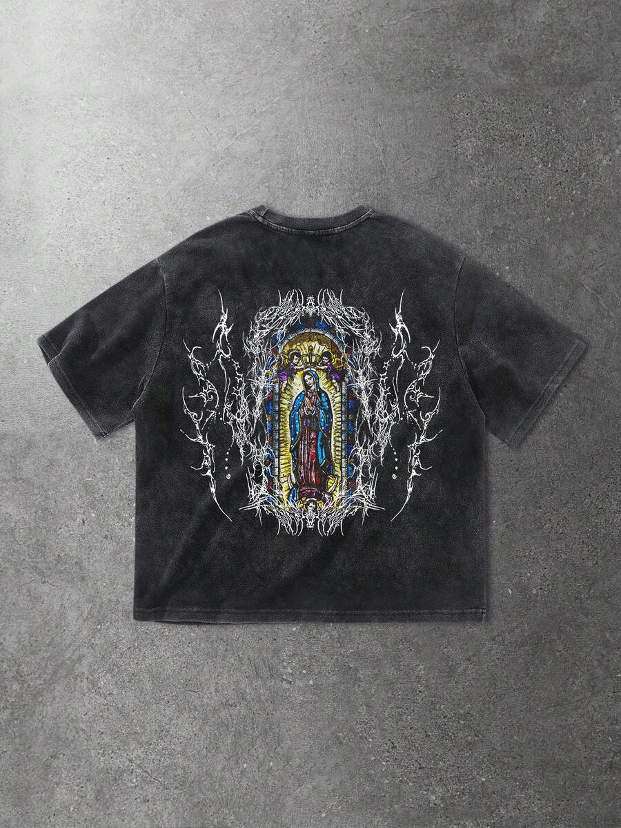 T-shirt lavé avec graphique de Vierge Marie délavé pour homme