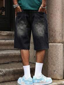 Short en jean délavé casual de mode pour hommes avec broderie de strass