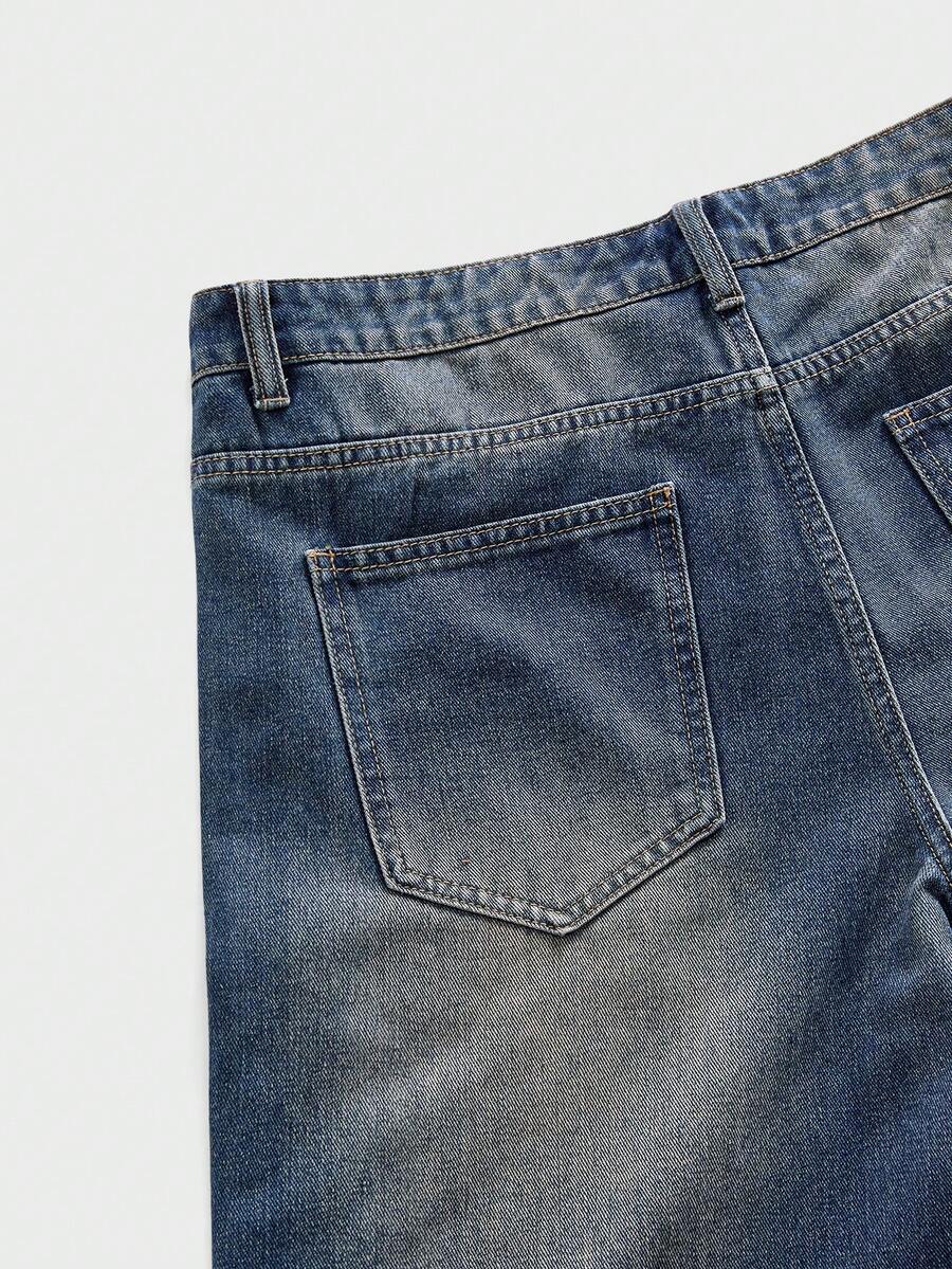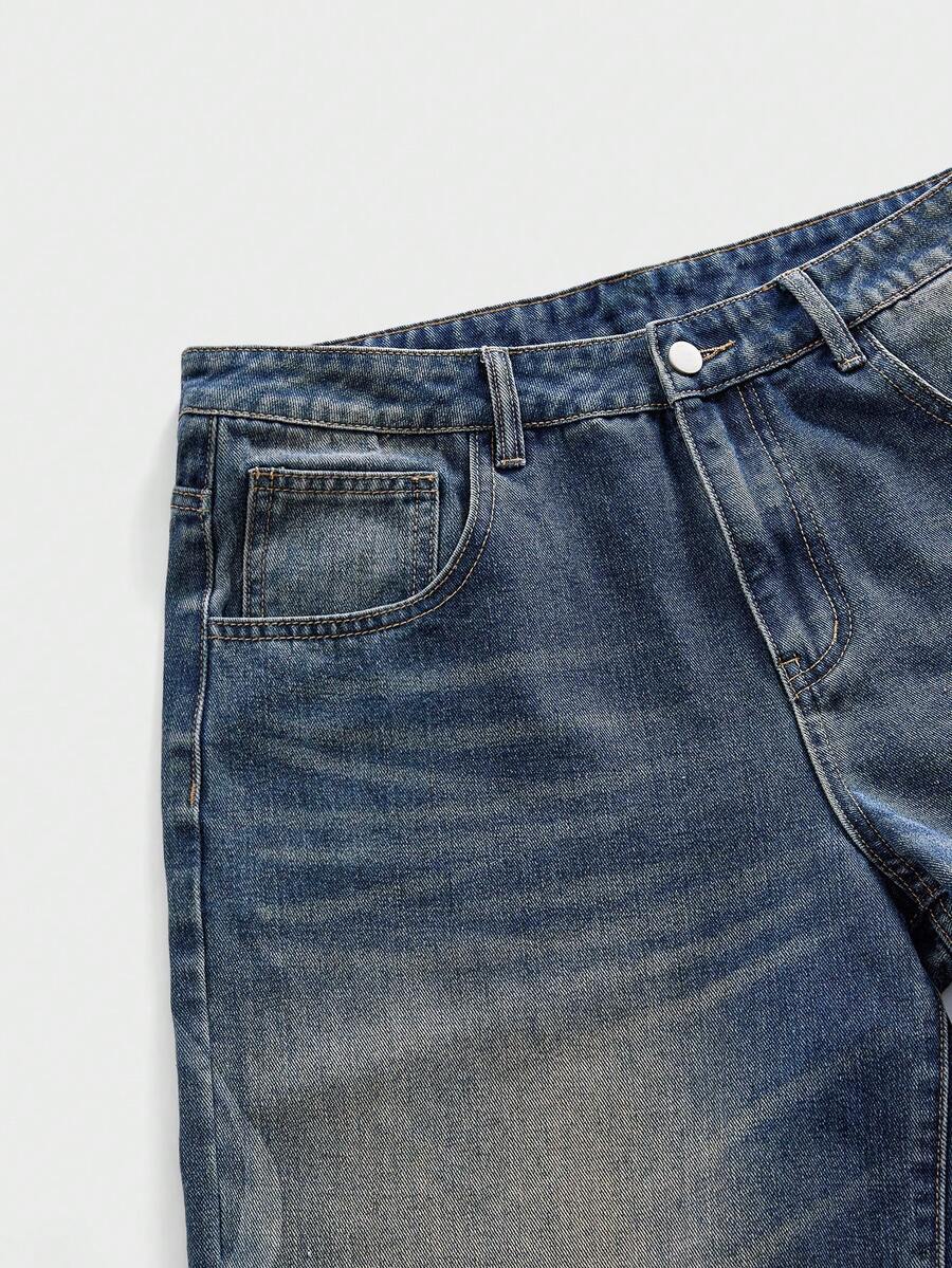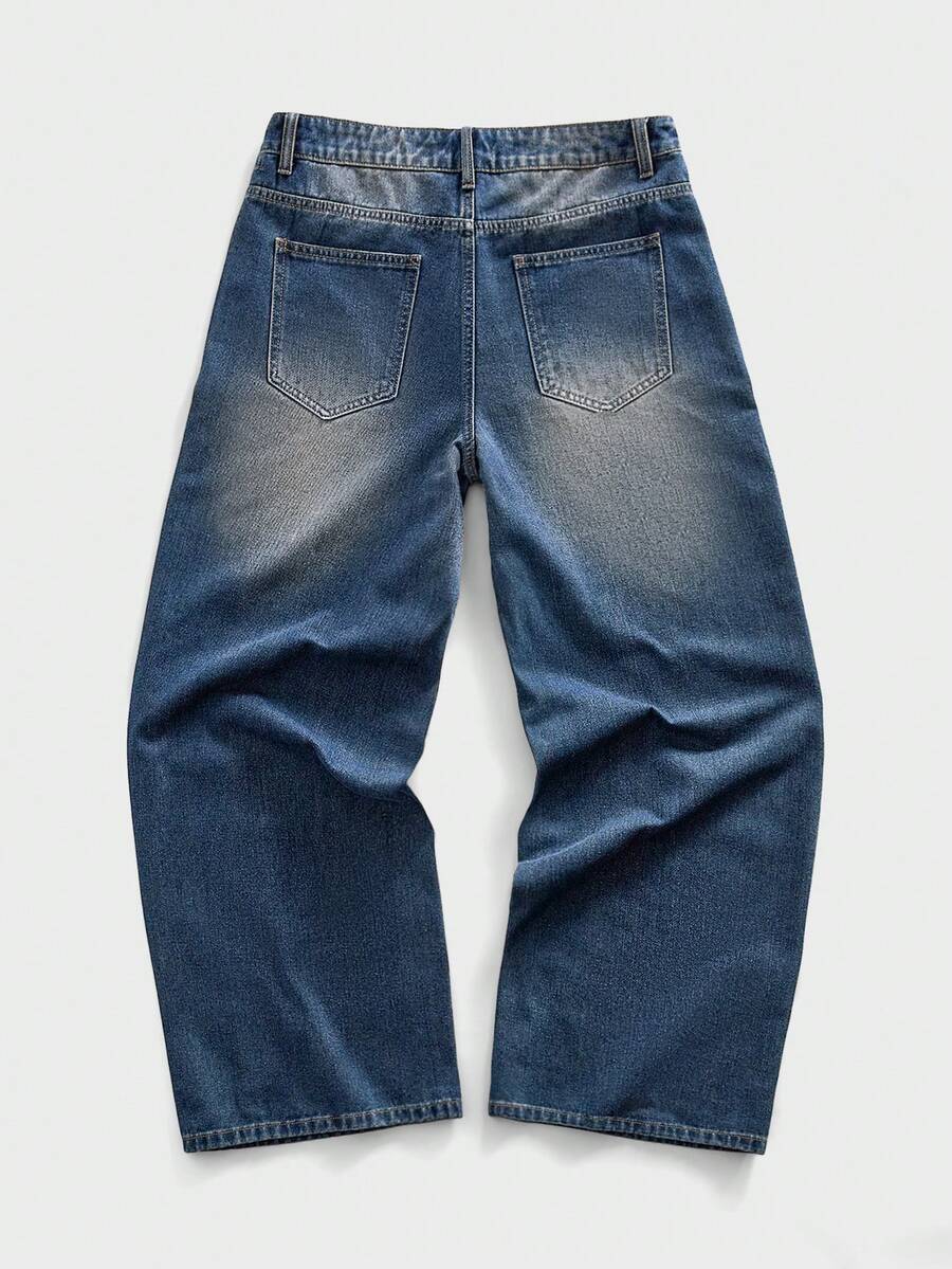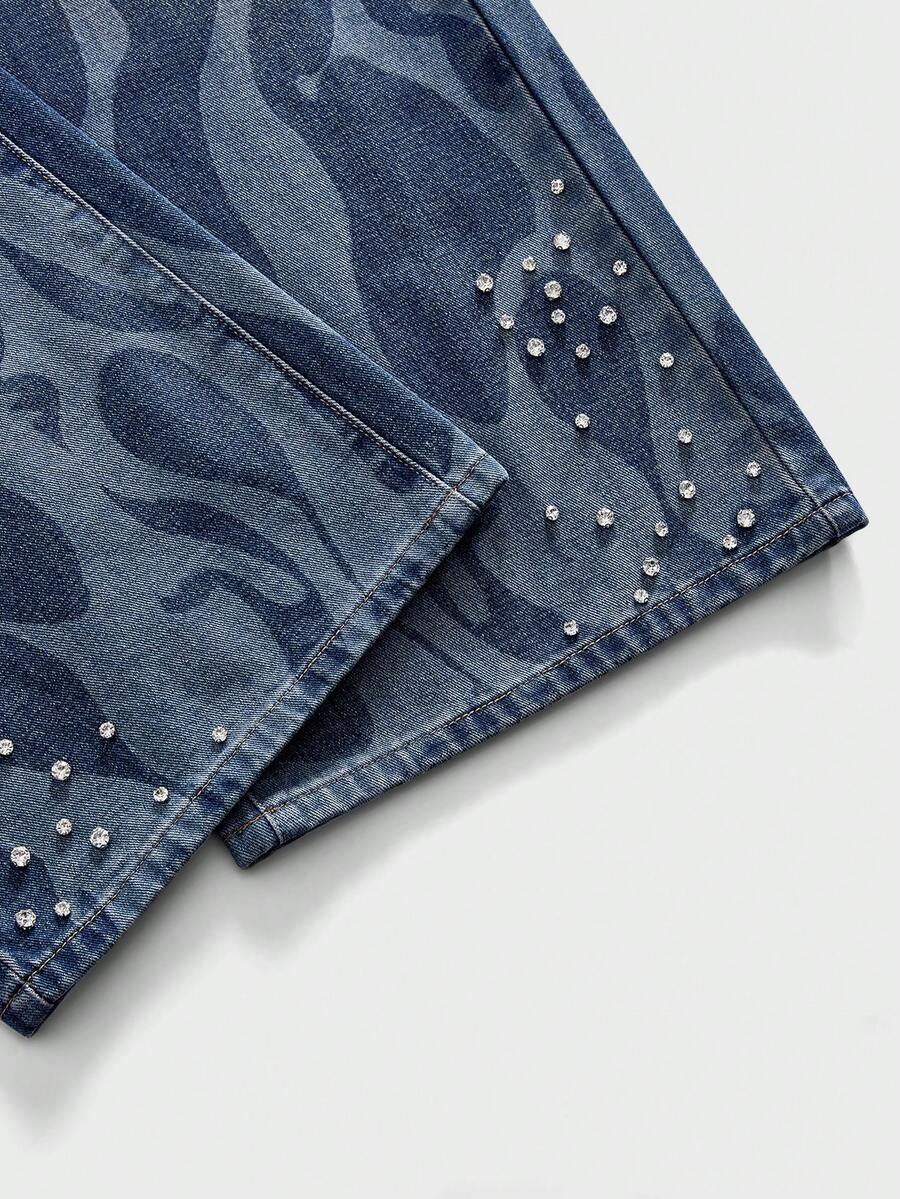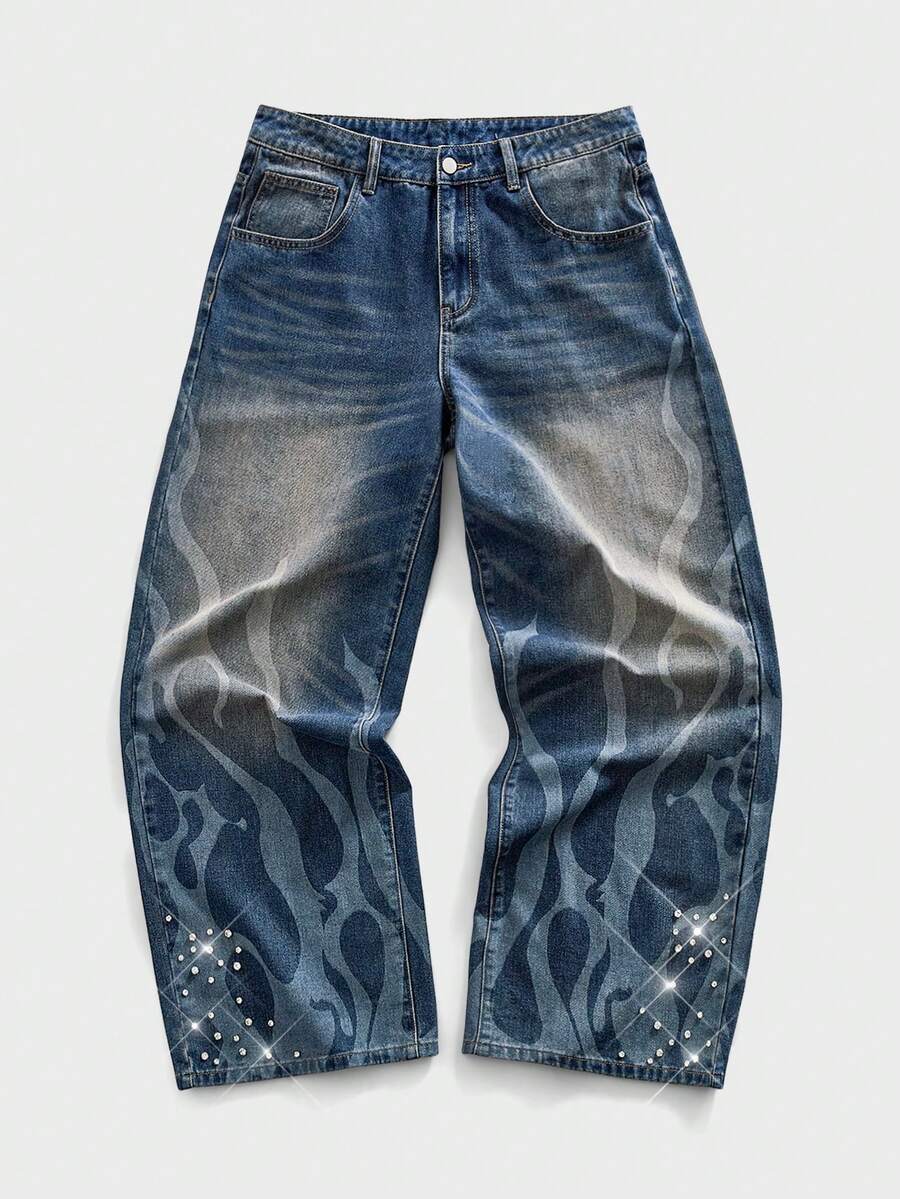 Jeans décontractés amples à jambe large avec motif de flamme sur la poche pour hommes