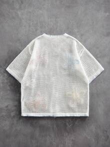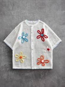 Top tricoté casual à col rond et imprimé floral, à simple boutonnage, pour homme