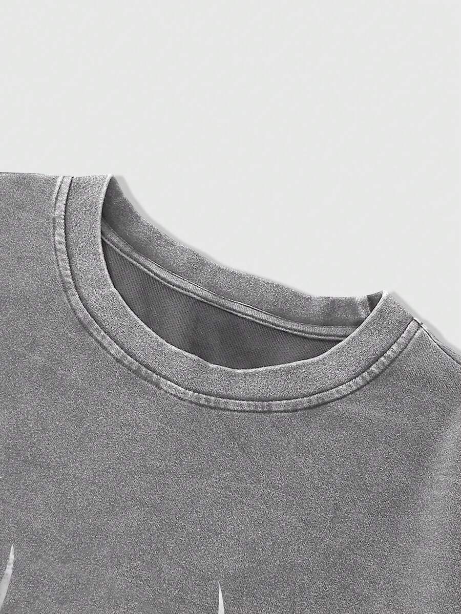 T-shirt décontracté à manches longues 2 en 1 avec col rond et imprimé gothique pour hommes