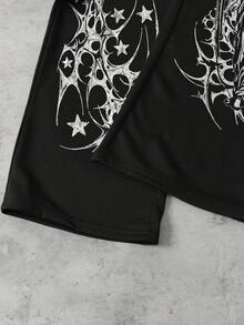 Goth Pantalon de jogging décontracté à taille élastique avec imprimé slogan et étoile, jambes larges pour hommes