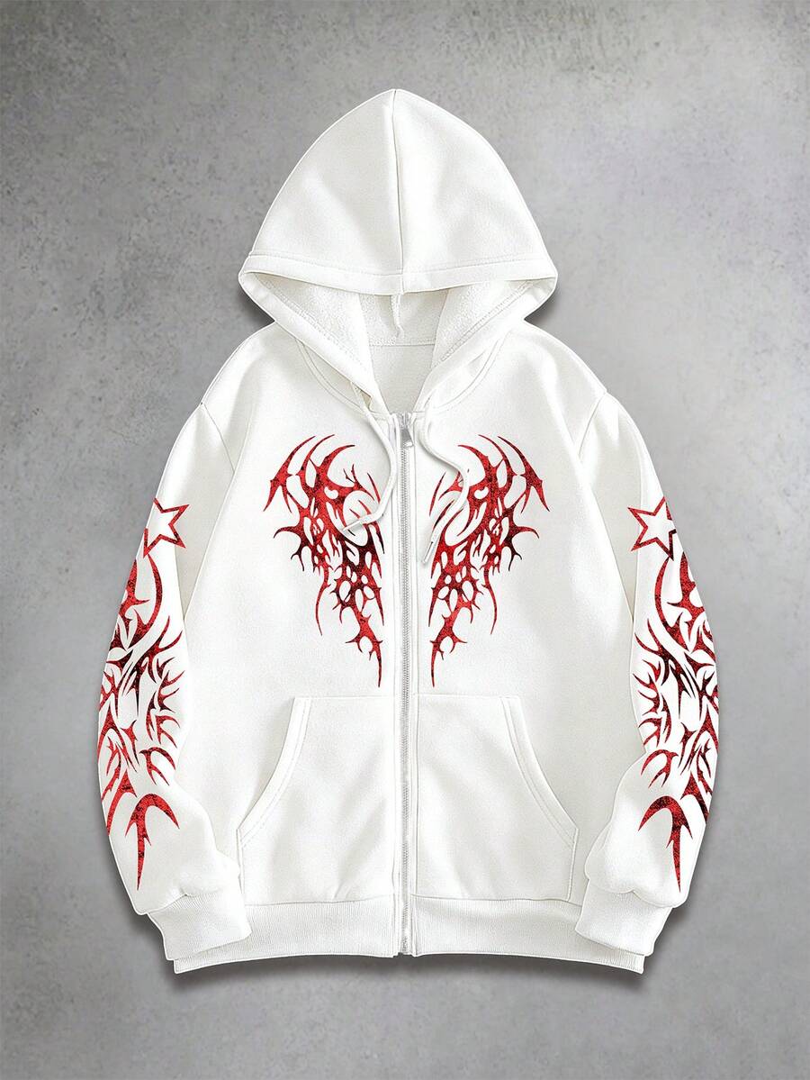 Goth sweat-shirt à capuche zippé à manches longues décontracté avec cordon de serrage pour hommes