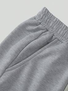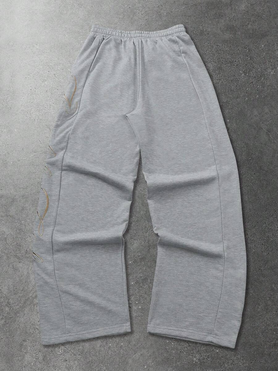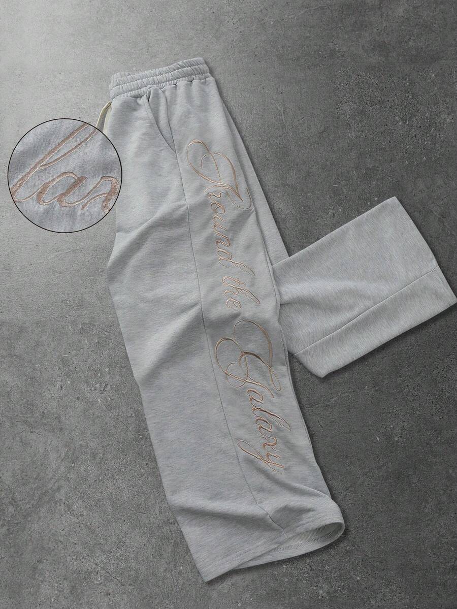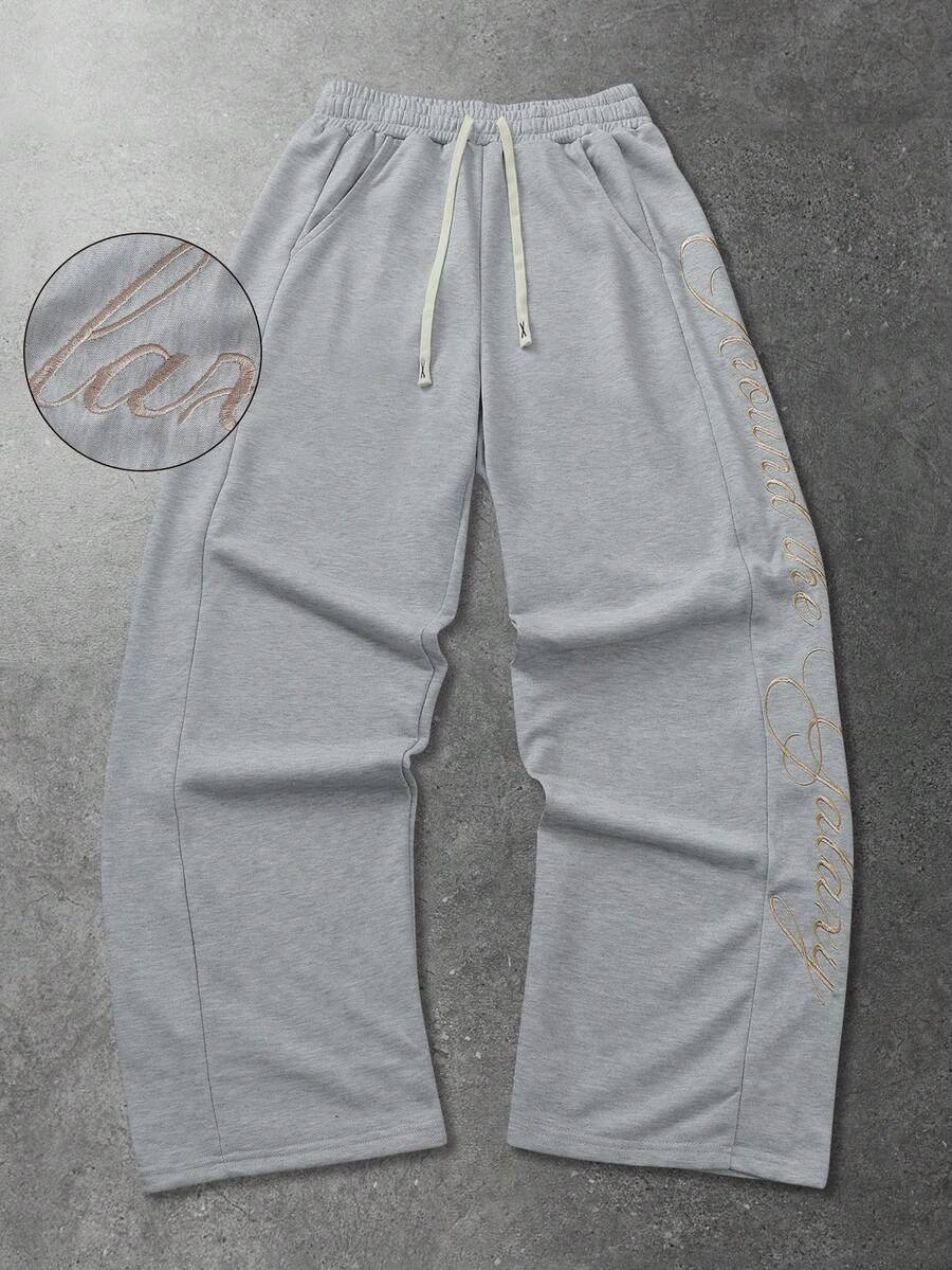 Pantalon de survêtement ample avec poche en biais et broderie de lettre, style décontracté polyvalent pour hommes