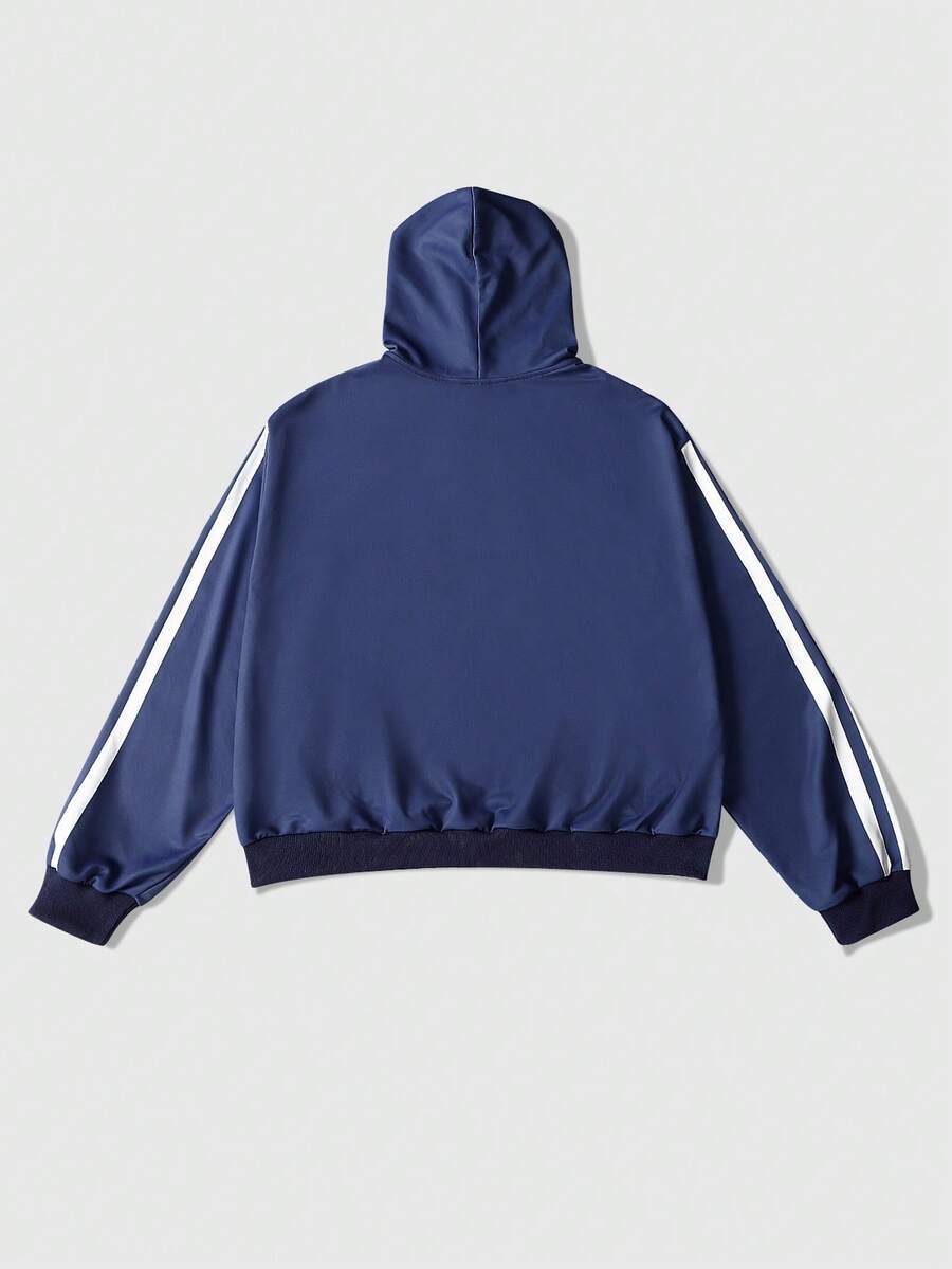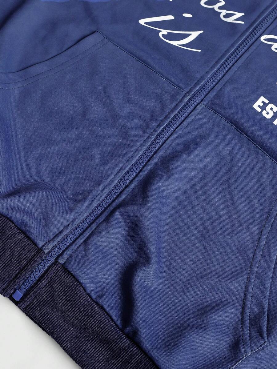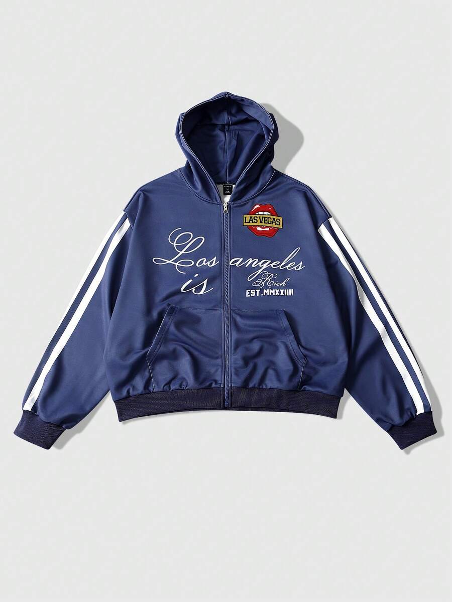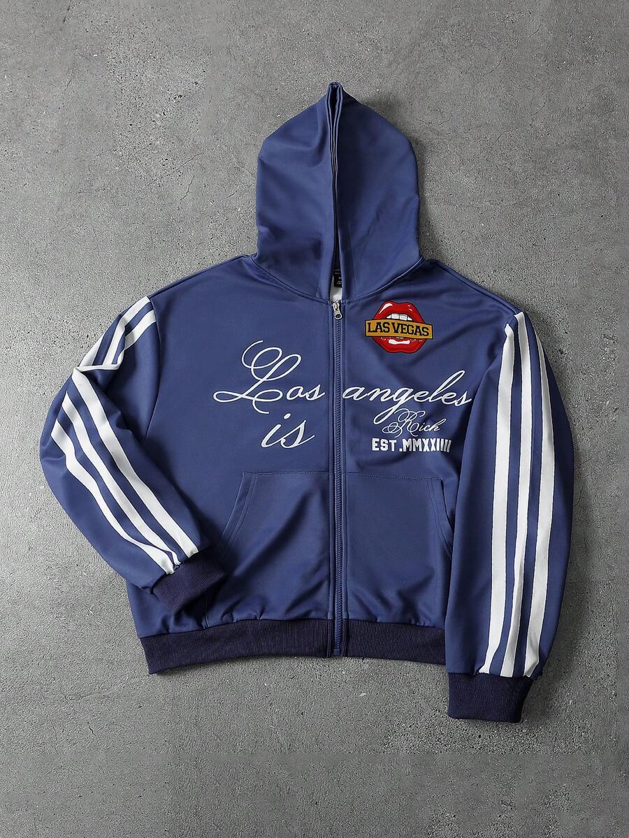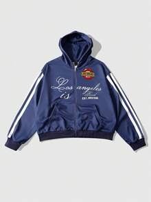 sweat-shirt à capuche décontracté à zip et imprimé de lettres à manches longues pour hommes