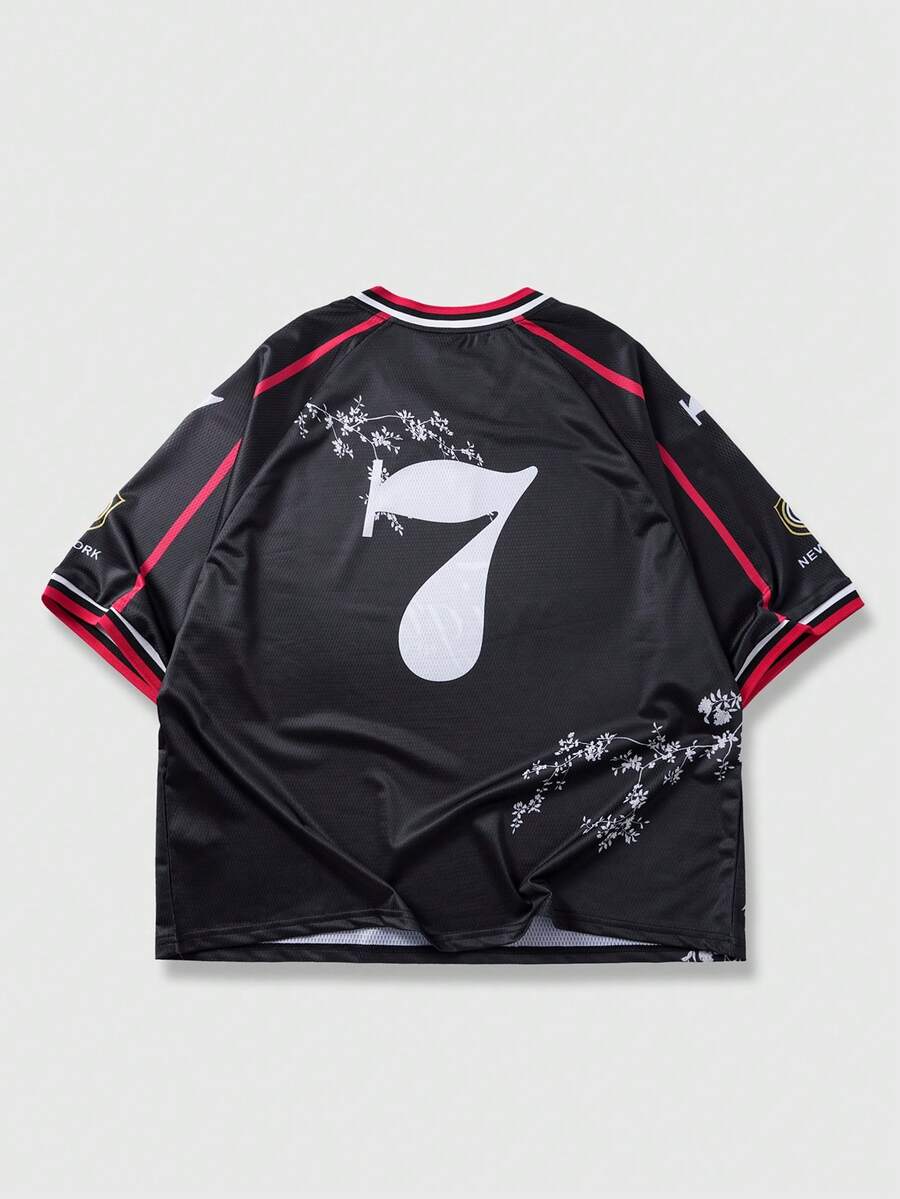 T-shirt casual ample à manches courtes col V avec imprimé lettres pour hommes