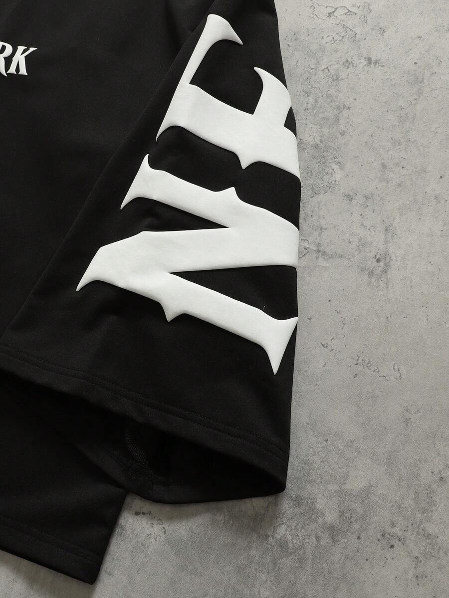 T-shirt ample à manches 3/4 avec imprimé métallisé pour hommes