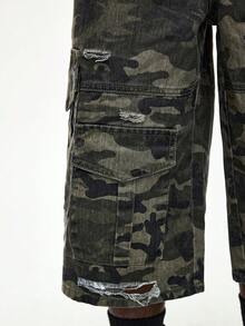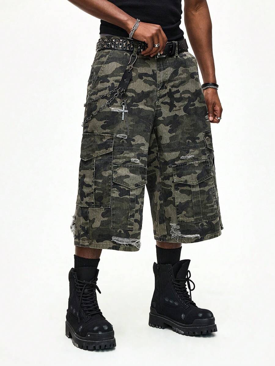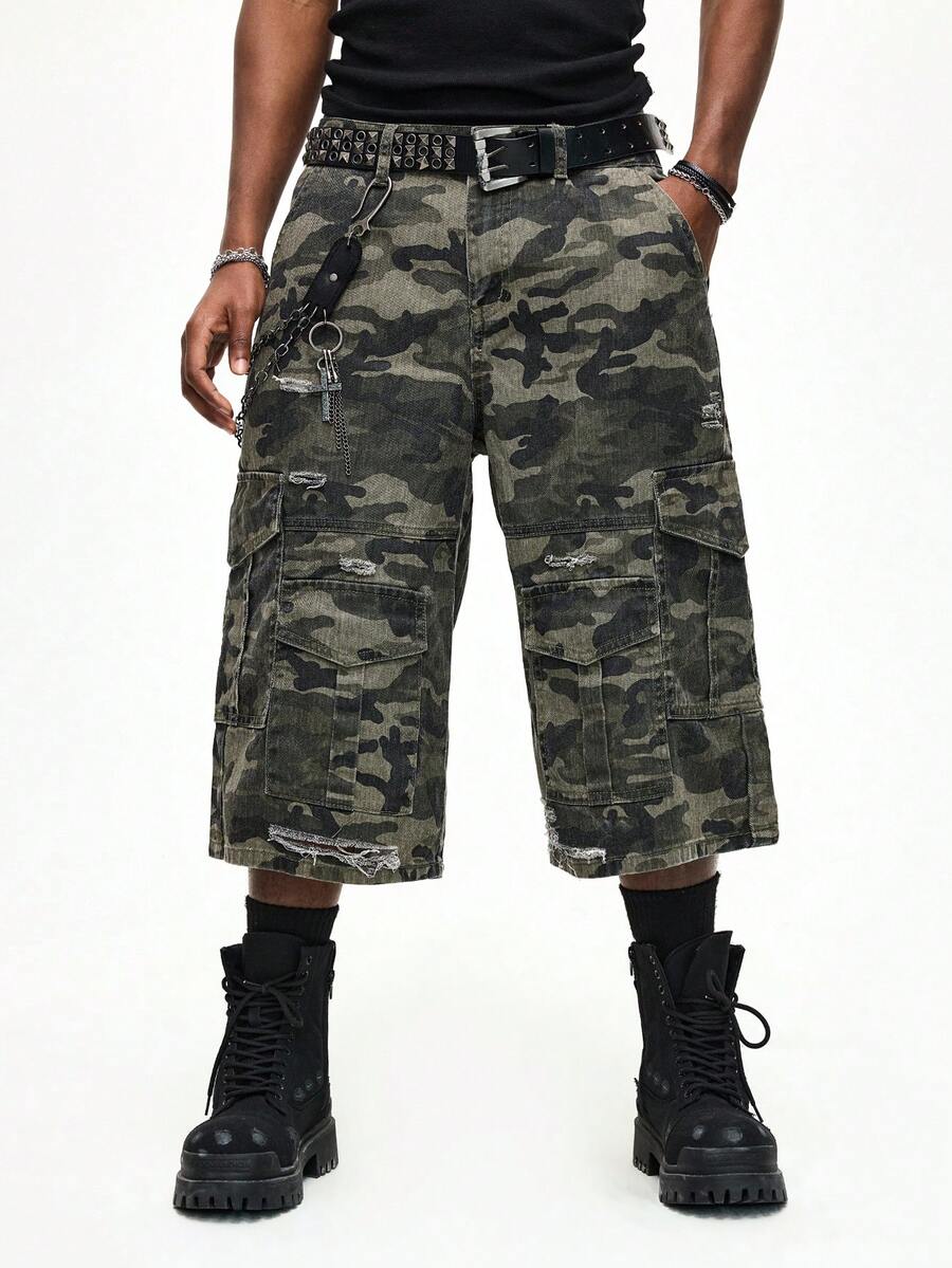 Shorts en jean amples de camouflage pour hommes