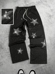Pantalon de survêtement ample à jambe droite pour hommes avec design d'étoiles scintillantes en diamant