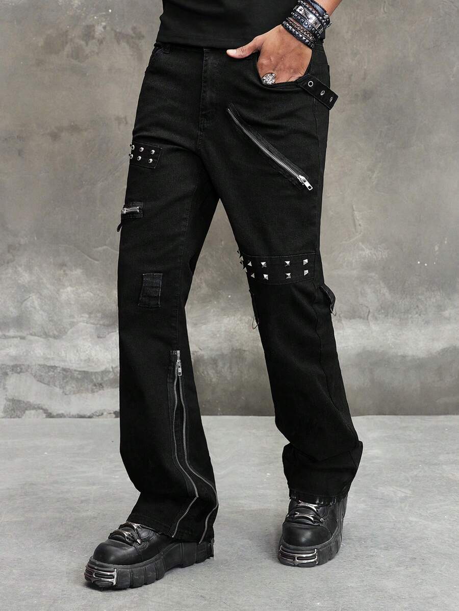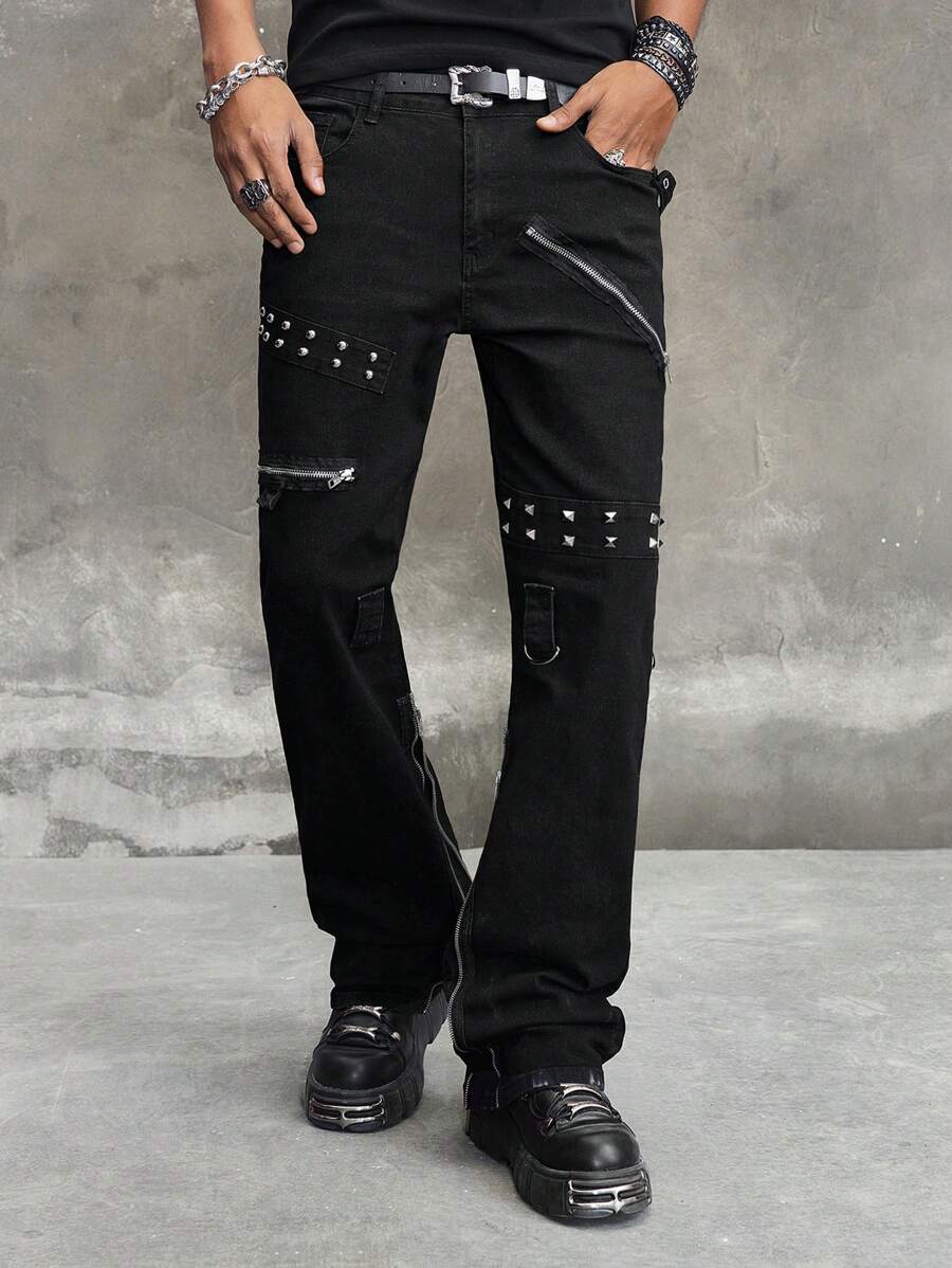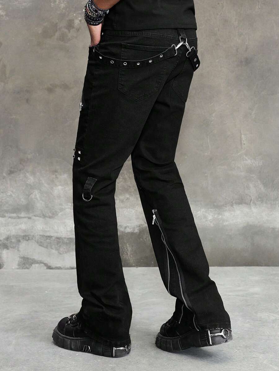 Jeans de cowboy pour hommes avec design œillet et poches, évasé casual