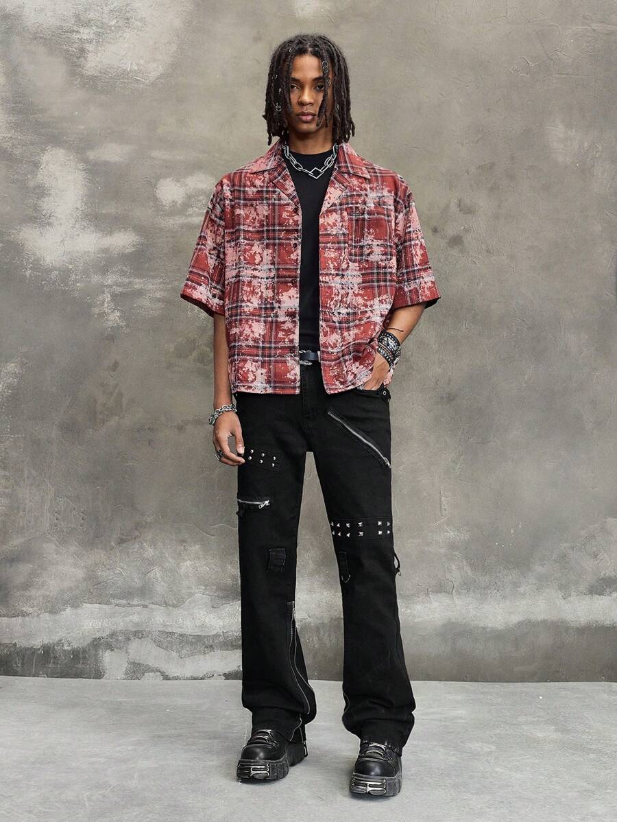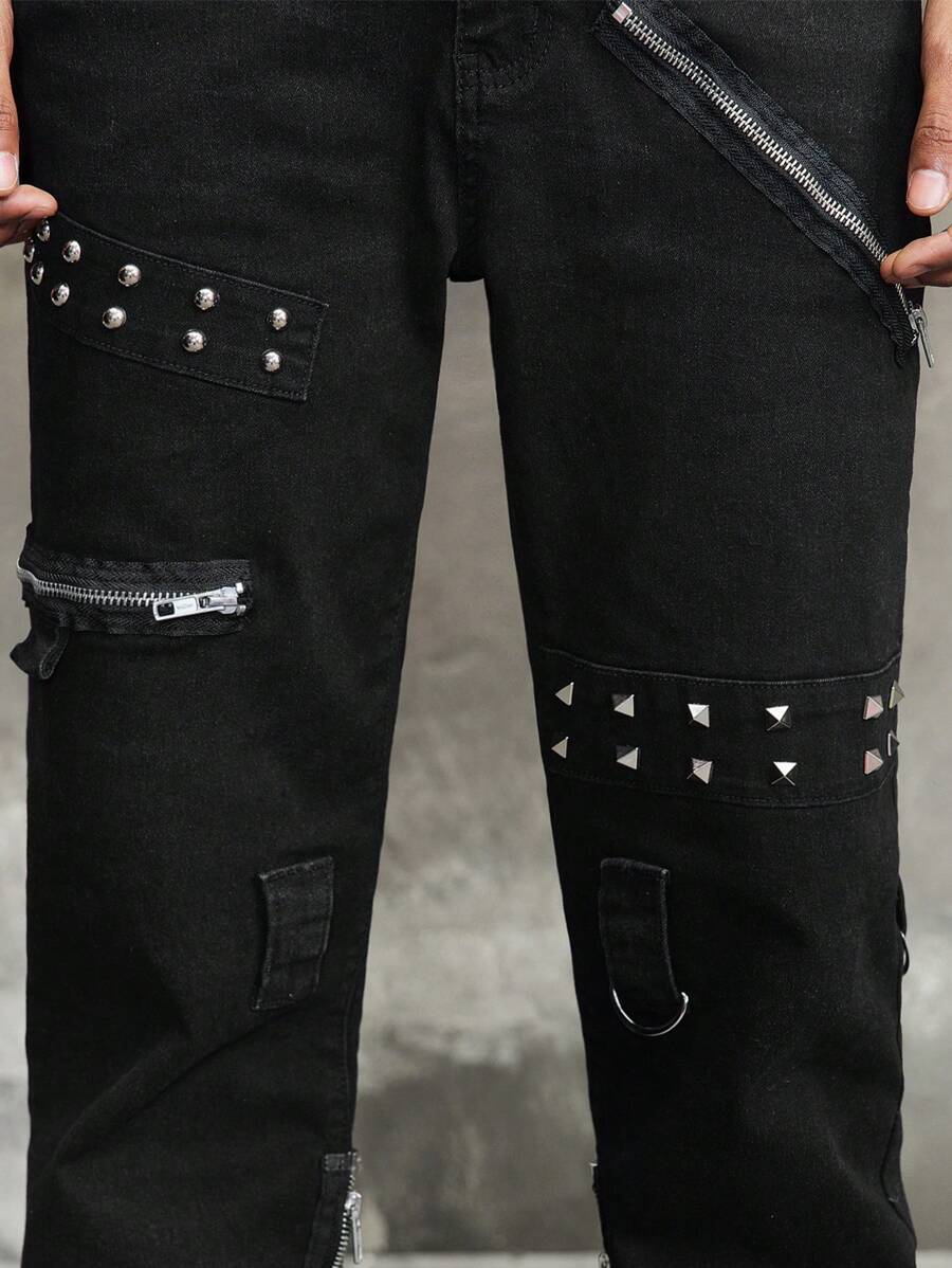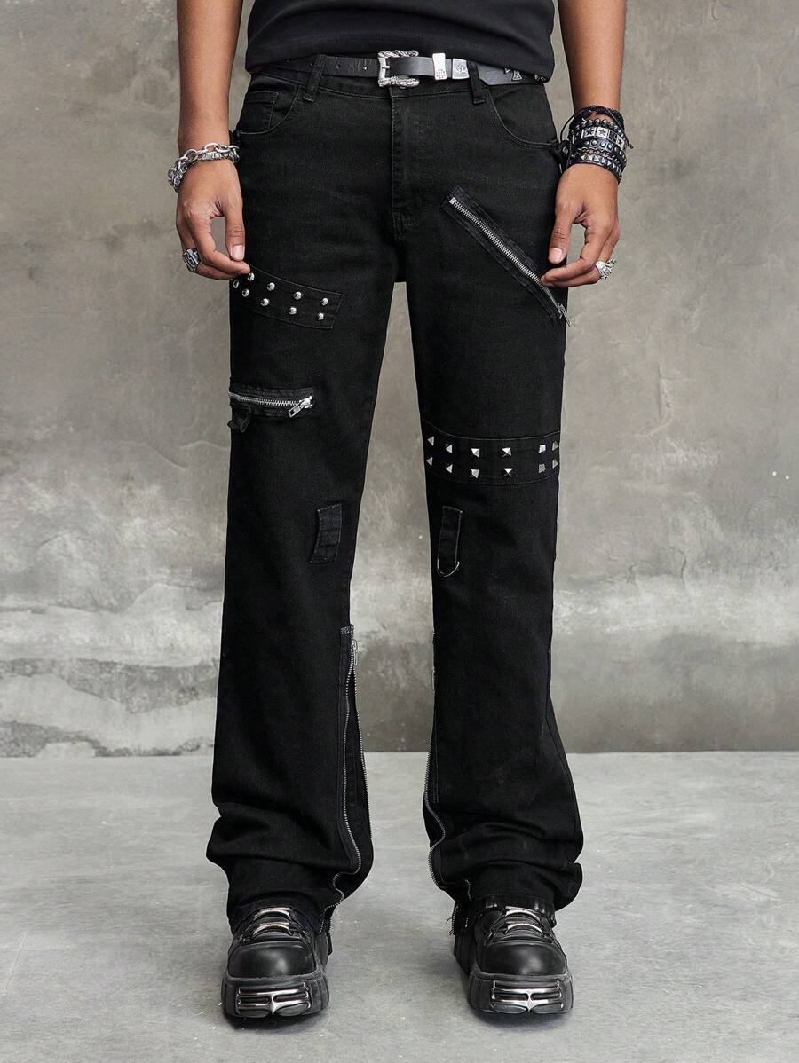 Jeans de cowboy pour hommes avec design œillet et poches, évasé casual
