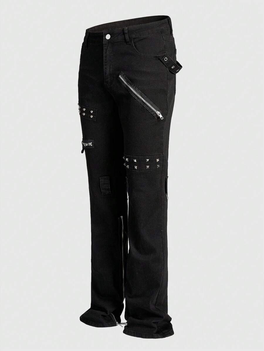 Street Life Jeans de cowboy pour hommes avec design œillet et poches, évasé casual