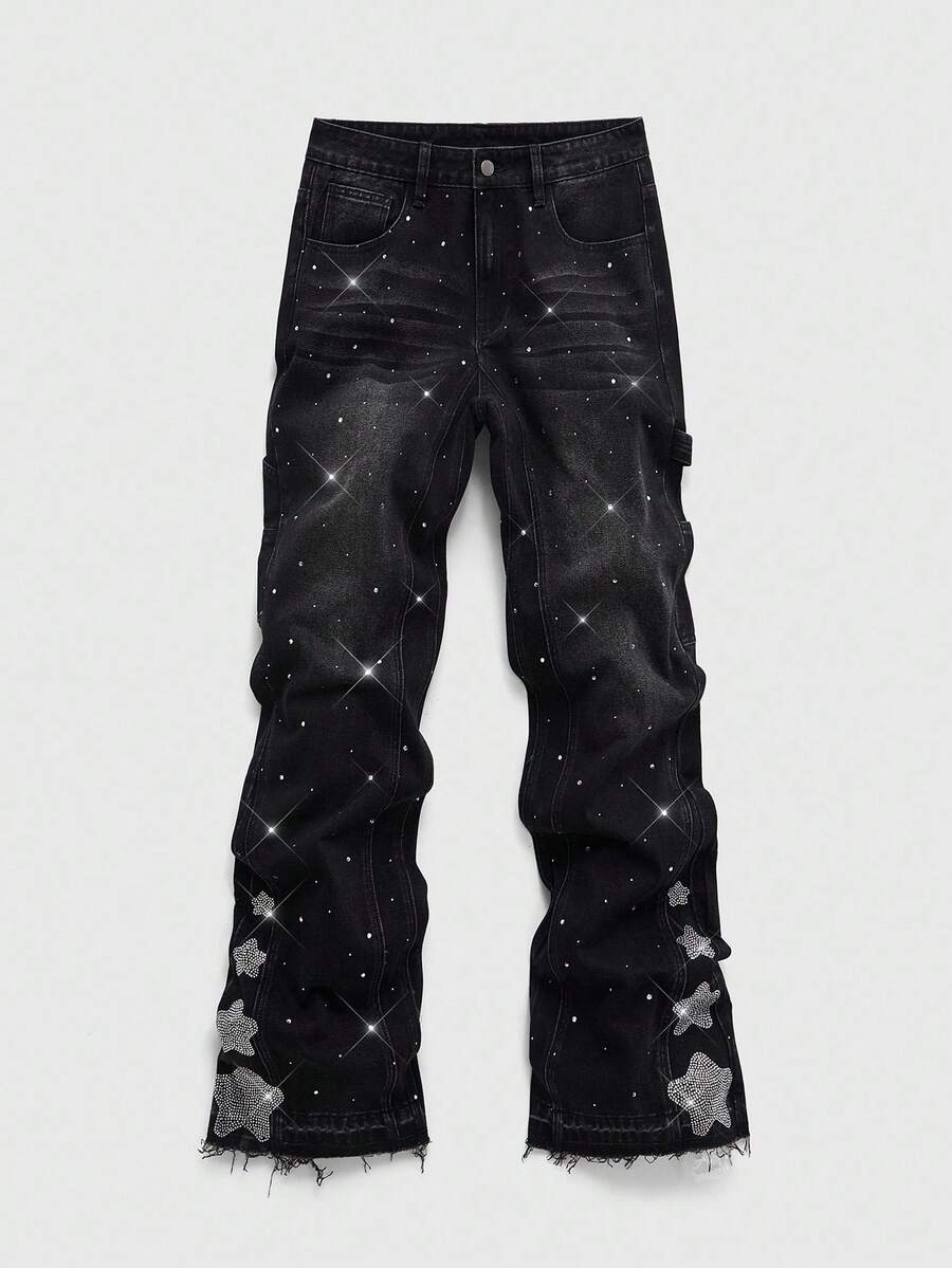 Pantalon décontracté pour hommes avec poches ornées de strass, polyvalent pour le port quotidien, printemps/été