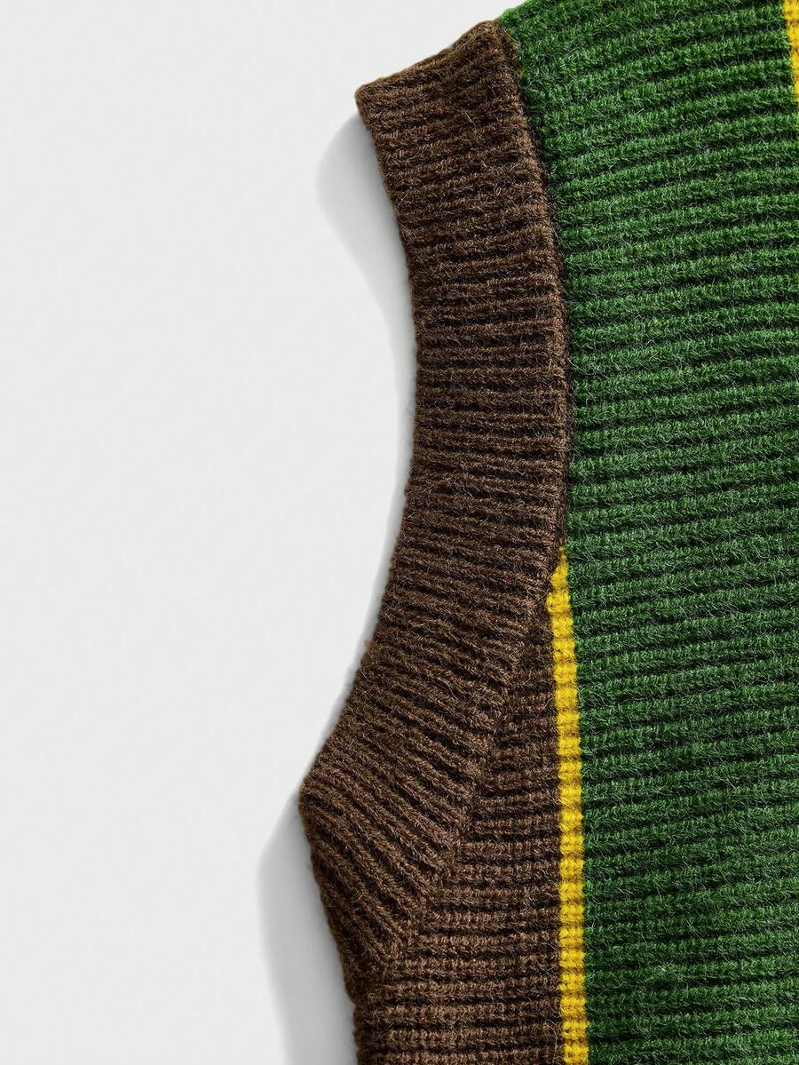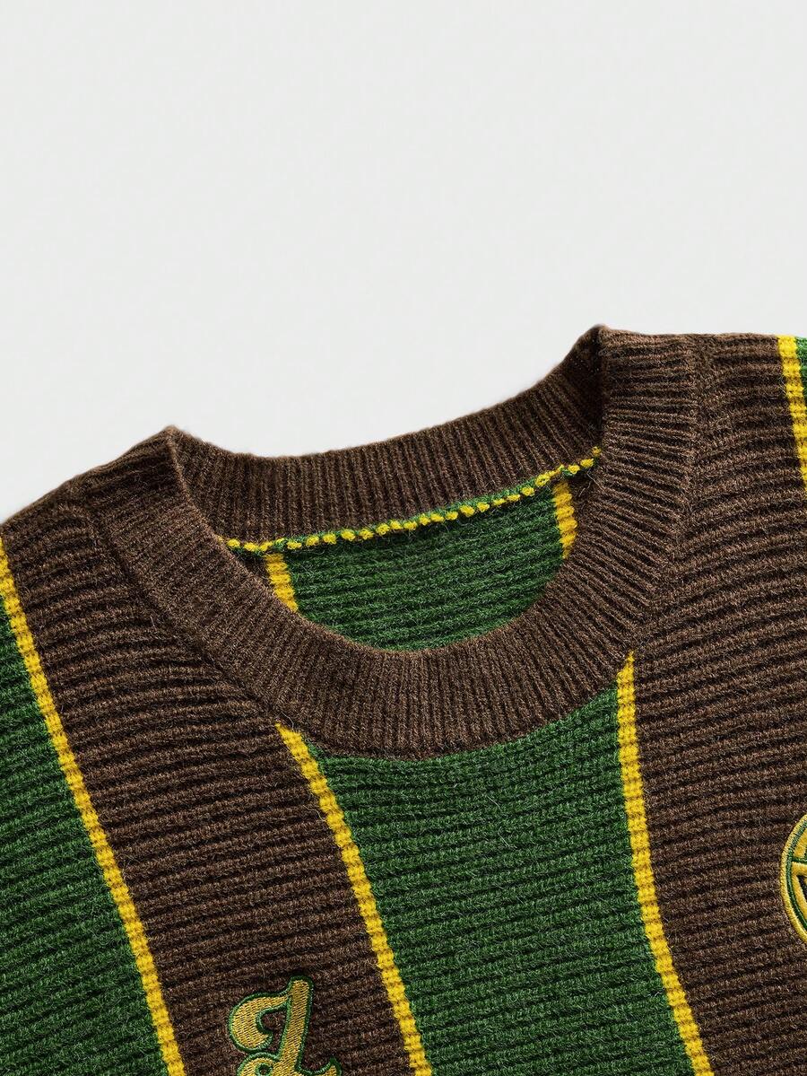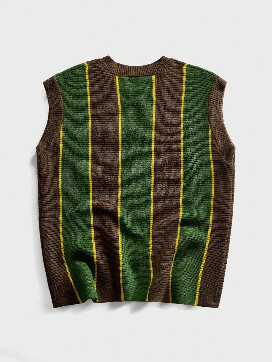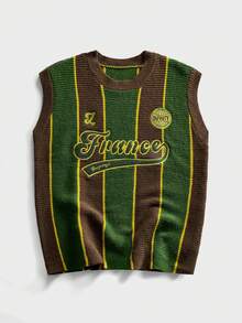 Gilet tricoté à col rond brodé pour hommes
