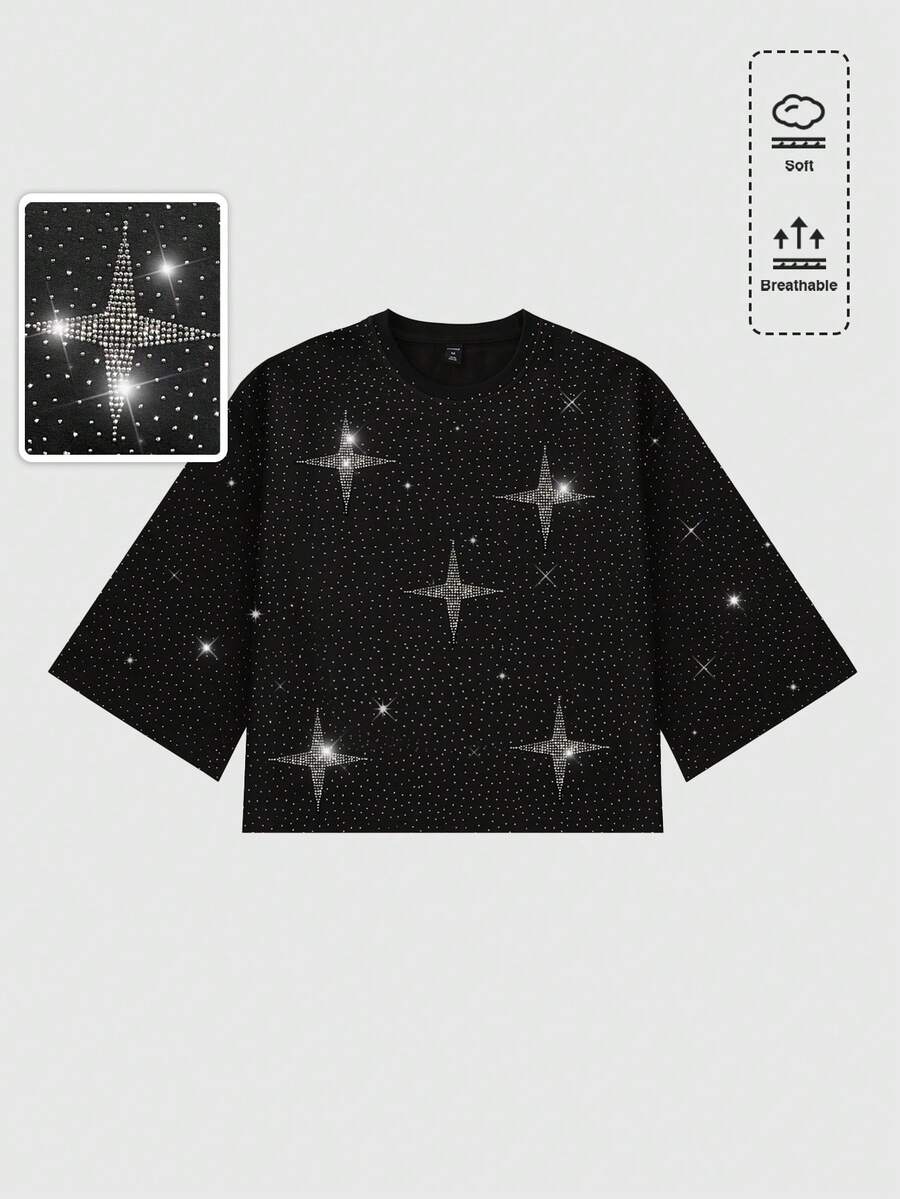 T-shirt à manches courtes pour hommes, col rond, mode été, polyvalent, avec diamants scintillants