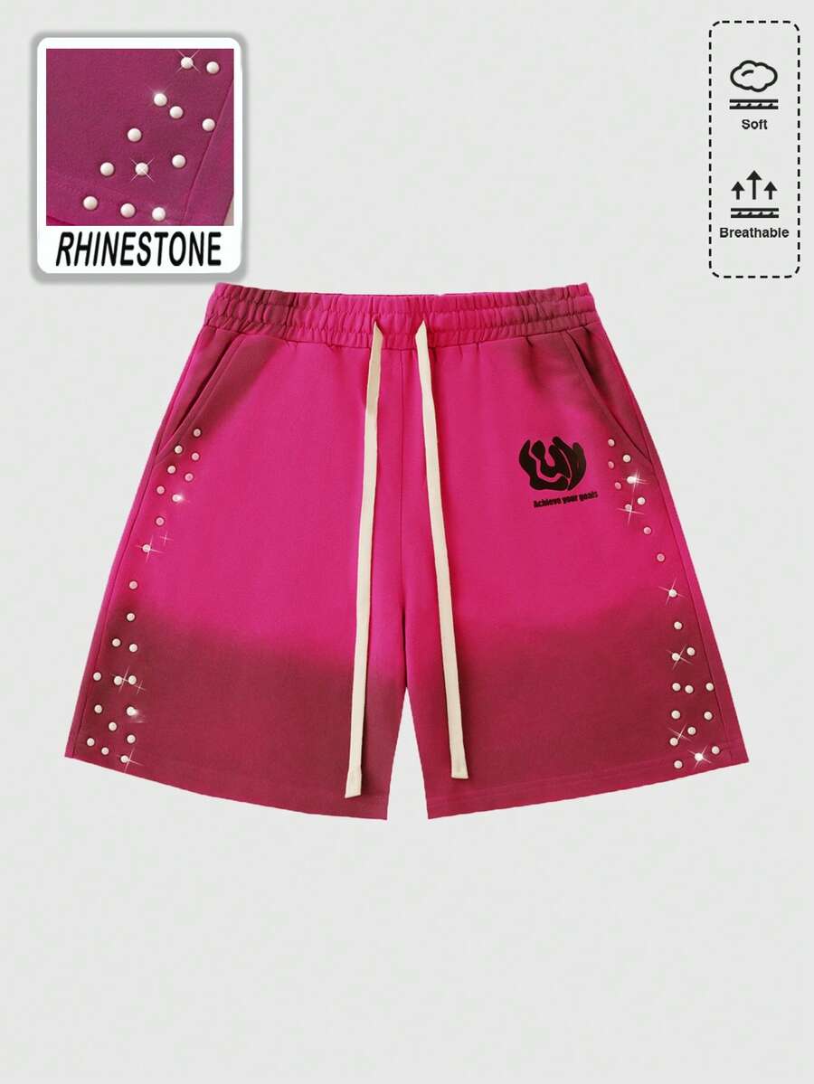 Street Life Short en rose vif pour homme, avec graphique, strass et effet délavé usé