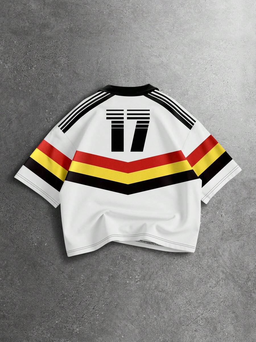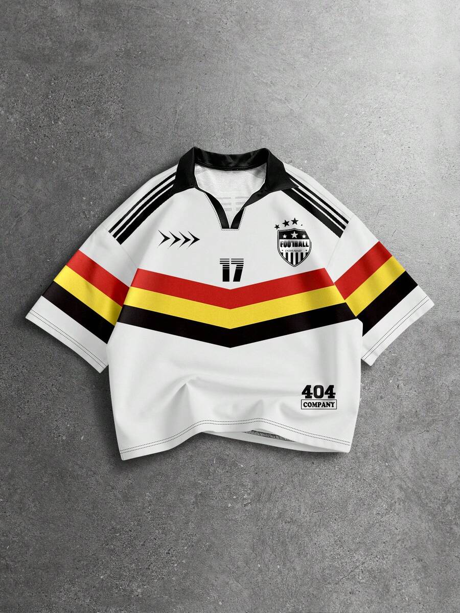 Chemise polo décontractée à manches courtes avec imprimé de numéros et rayures pour hommes