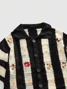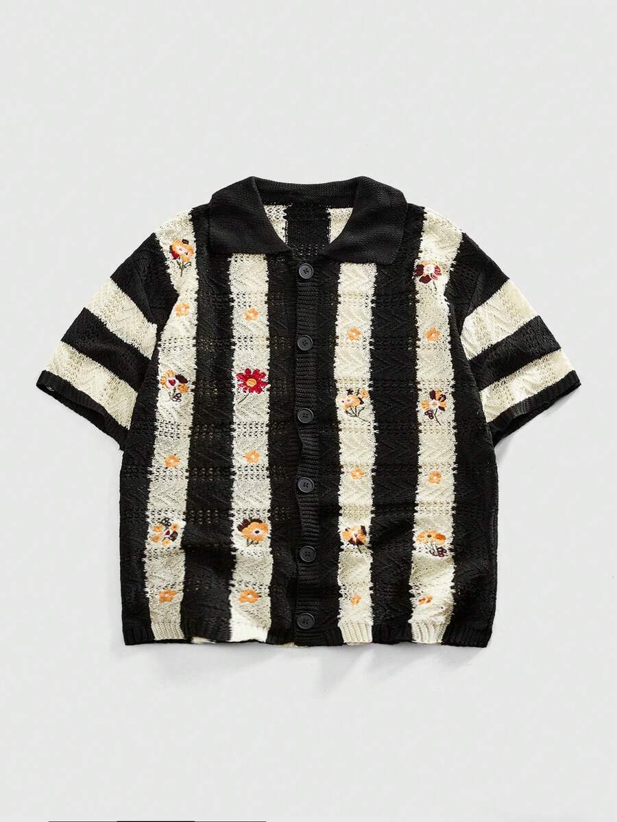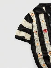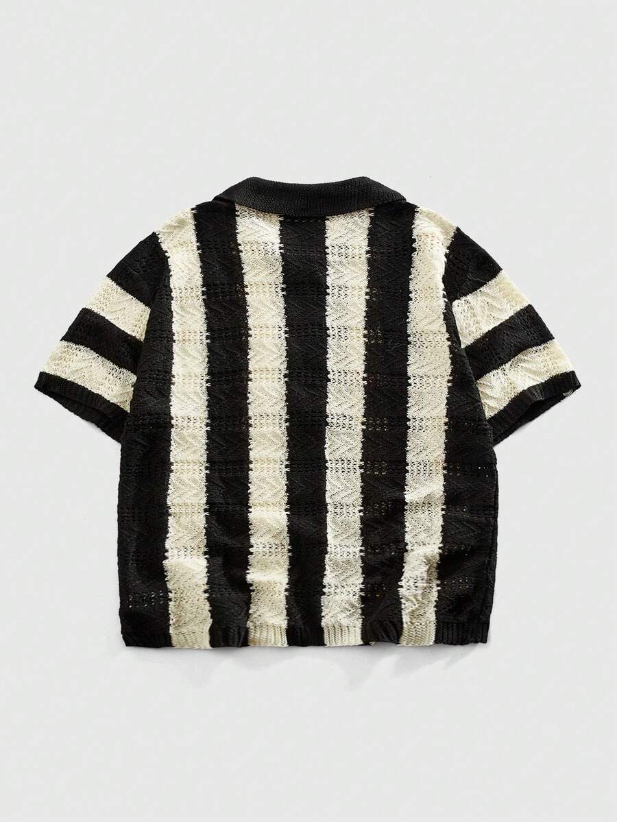 Cardigan décontracté à rayures à manches courtes et simple boutonnage pour hommes, style rétro en tricot