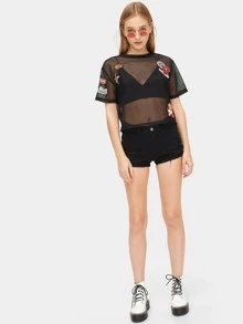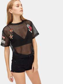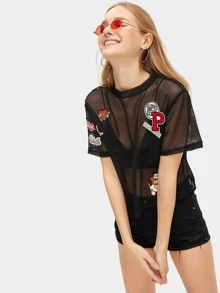 T-shirt transparent en tulle avec patch
