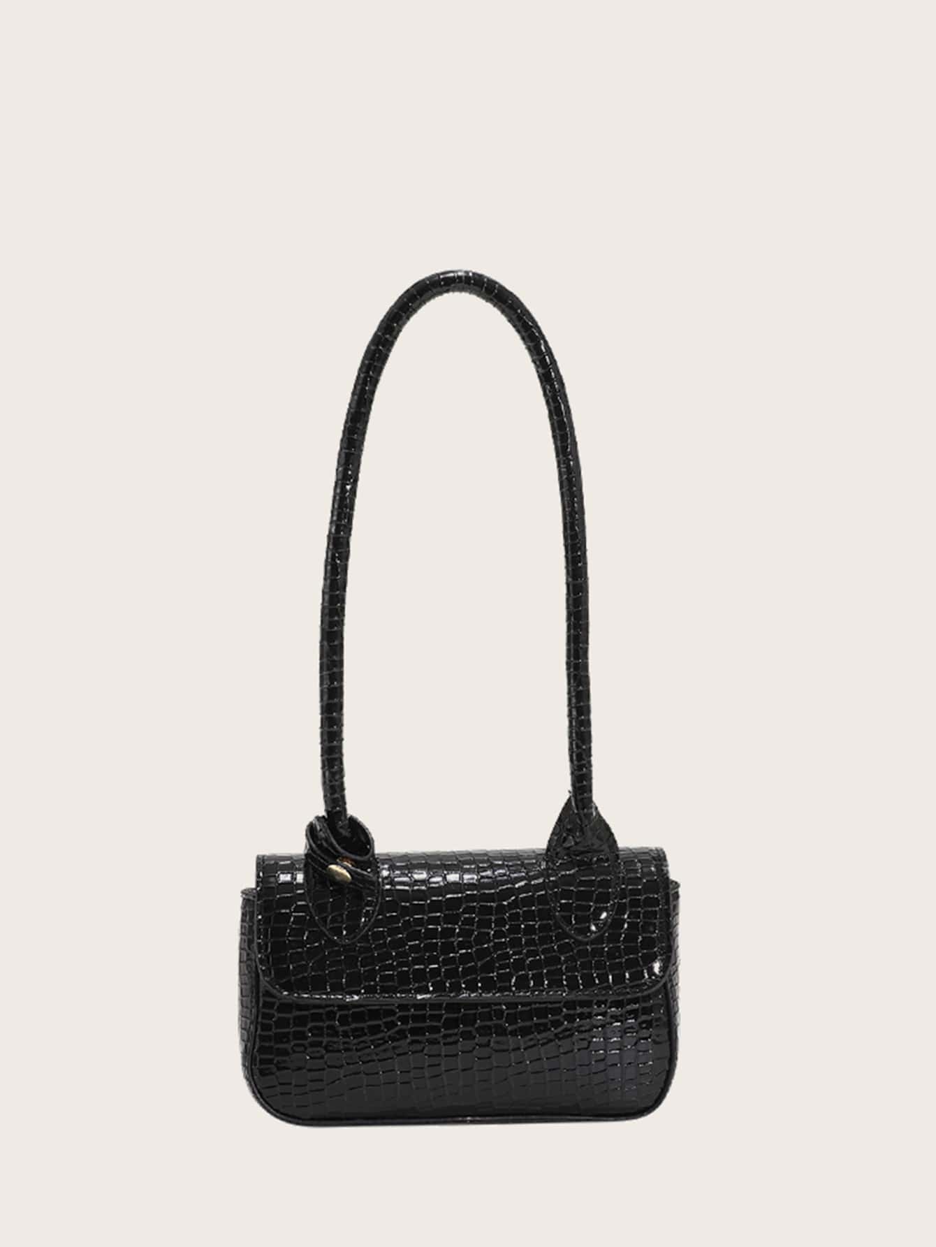 Sac carré mini en relief de crocodile à rabat