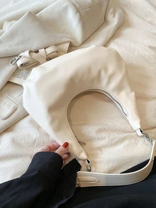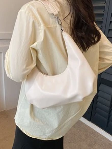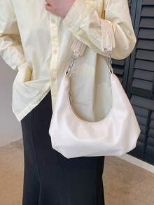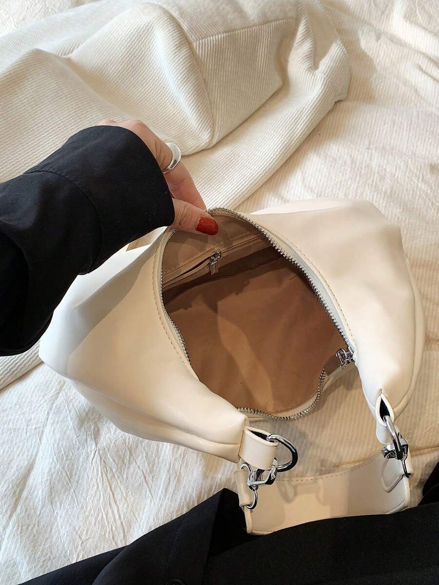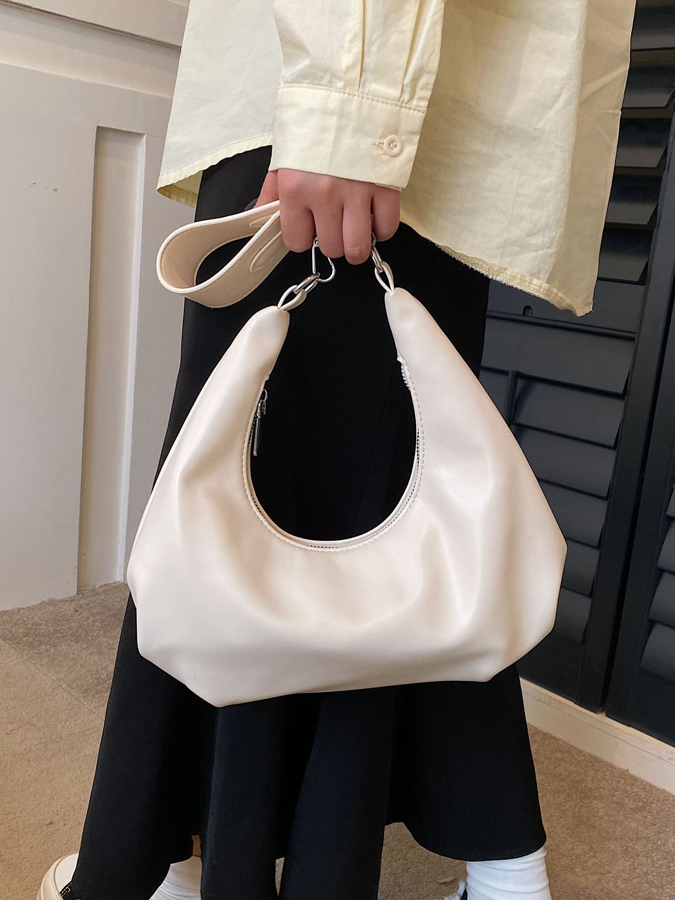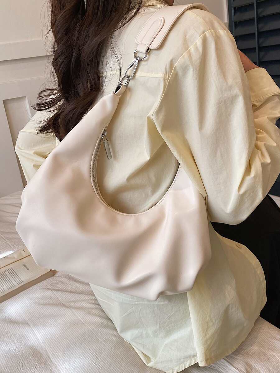 Sac Hobo Minimaliste Moyen À Ruché beige