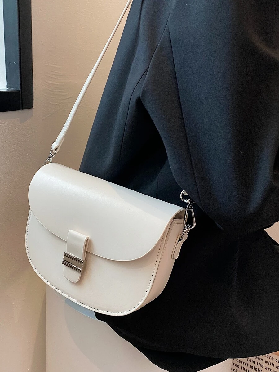Minimaliste Sac De Selle Blanc À Rabat Sac À Bandoulière Pour Femme