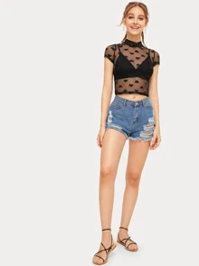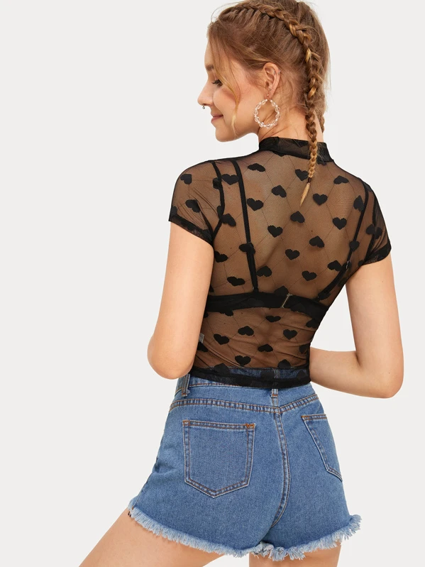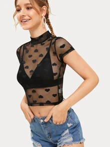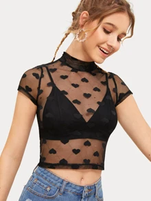 Crop Top transparent avec motif de cœur (sans soutien-gorge)