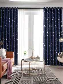 Rideaux Occultants Modernes De Style Simple Avec Grand Motif D'étoiles Et De Lune Pour La Chambre À Coucher Et Le Salon, Faciles À Installer, Isolants Thermiques Et Occultant Les Rayons Du Soleil