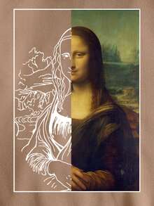 Sweat-shirt à capuche Mona Lisa à imprimé zippé à cordon à doublure thermique