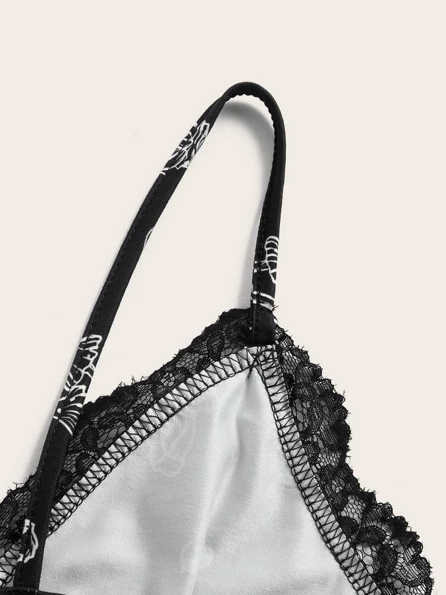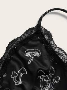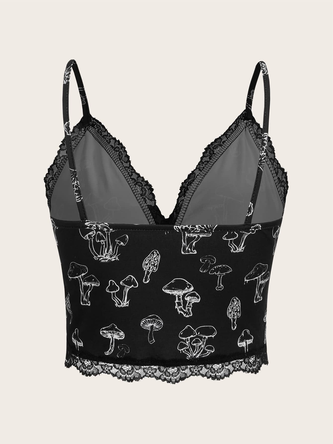 Top À Fines Brides Imprimé Champignon En Dentelle